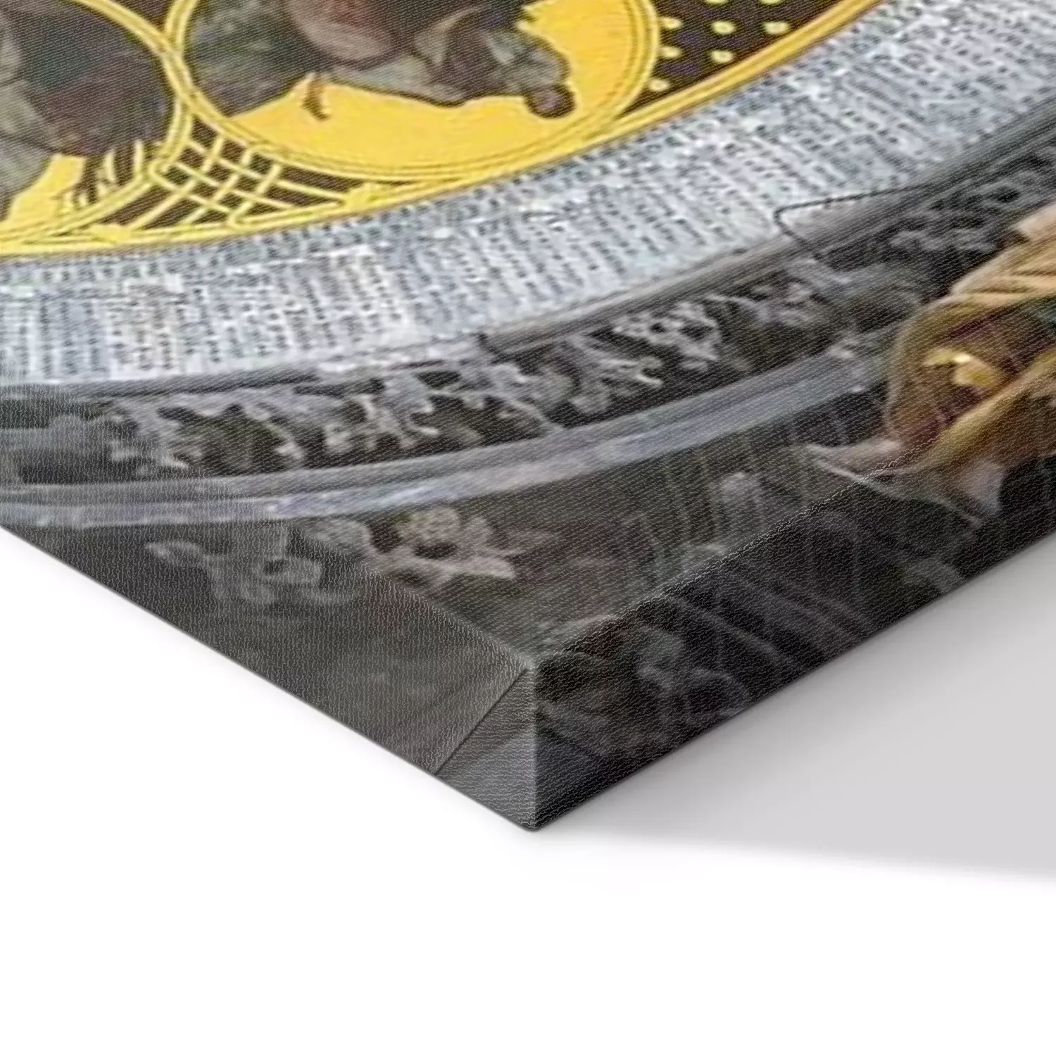 De print wordt aangebracht op hoogwaardig canvas dat op een schildersweefgetouw (spieraam) wordt gespannen. Omdat de print de zijranden bedekt, hoeft het ontwerp niet met een extra kader te worden omlijst. Wij raden ook composities aan die uit meerdere foto's bestaan en zo een coherente compositie vormen.