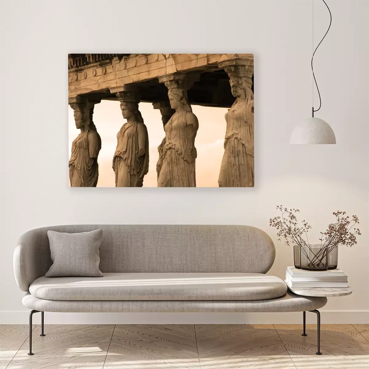 Canvas: Athene, Griekenland - kariatiden, gebeeldhouwde vrouwelijke figuren
