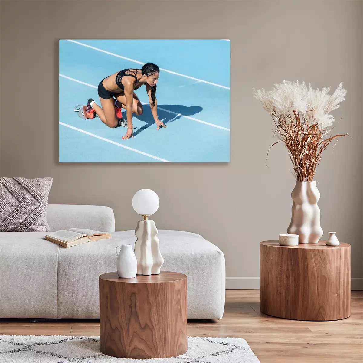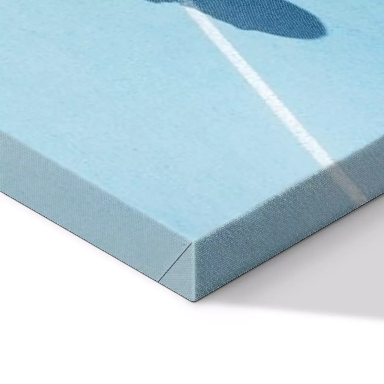 De print wordt aangebracht op hoogwaardig canvas dat op een schildersweefgetouw (spieraam) wordt gespannen. Omdat de print de zijranden bedekt, hoeft het ontwerp niet met een extra kader te worden omlijst. Wij raden ook composities aan die uit meerdere foto's bestaan en zo een coherente compositie vormen.