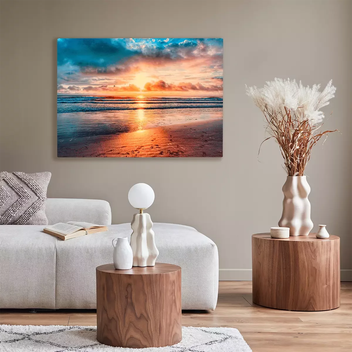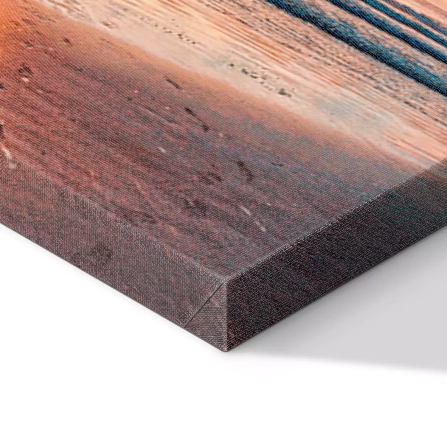 De print wordt aangebracht op hoogwaardig canvas dat op een schildersweefgetouw (spieraam) wordt gespannen. Omdat de print de zijranden bedekt, hoeft het ontwerp niet met een extra kader te worden omlijst. Wij raden ook composities aan die uit meerdere foto's bestaan en zo een coherente compositie vormen.