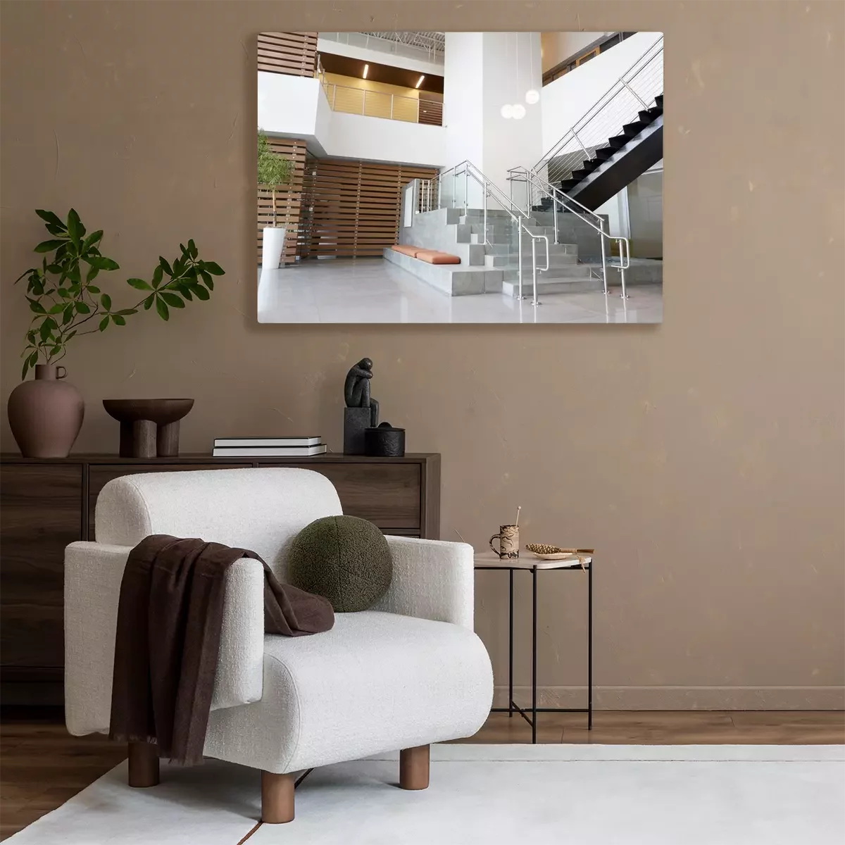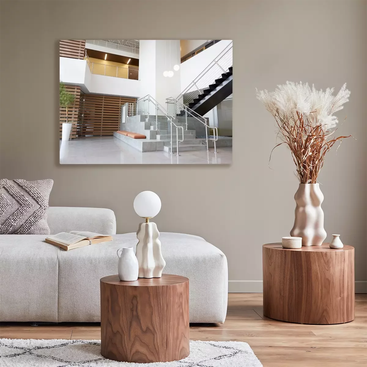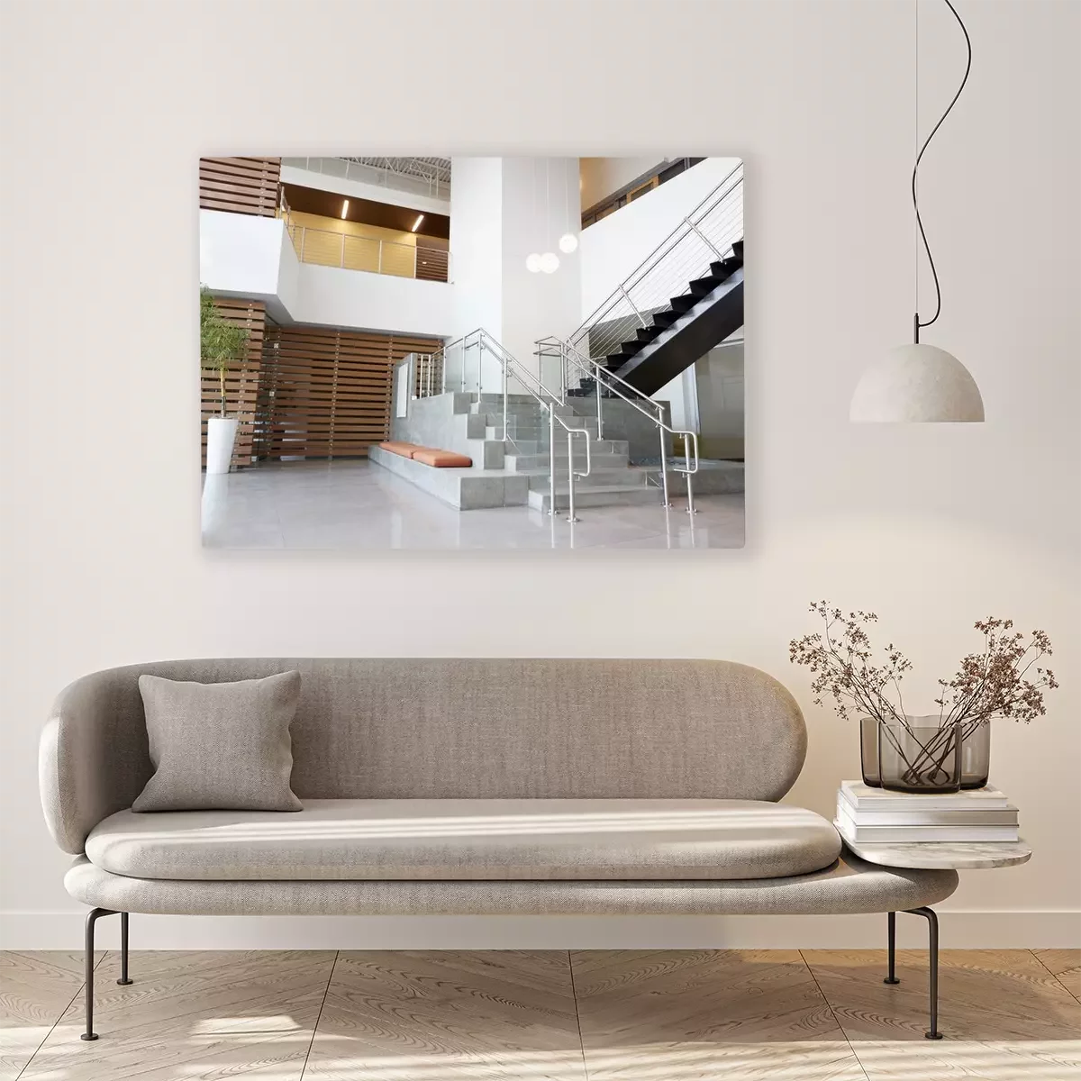 Canvas: Atriumlobby en treden in een modern bureaugebouw