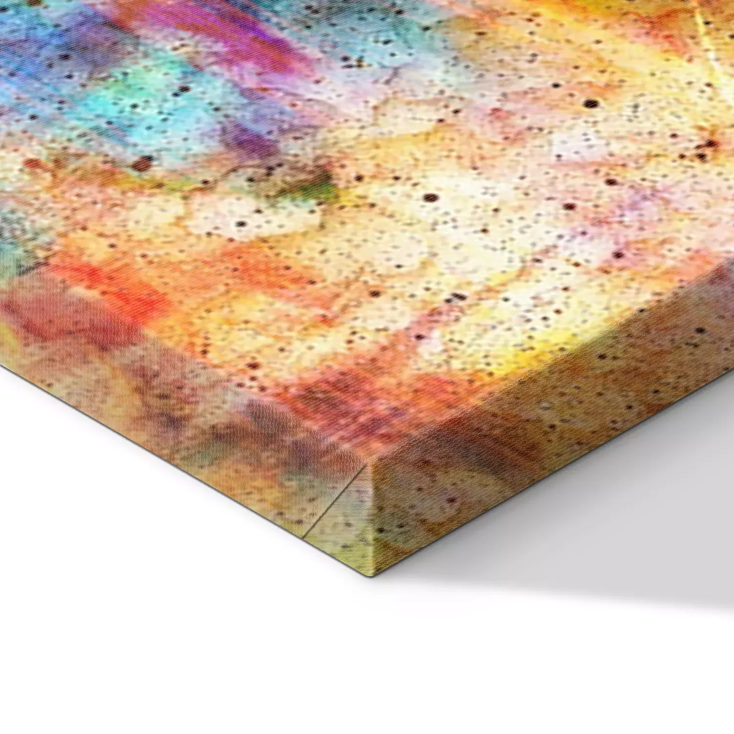 De print wordt aangebracht op hoogwaardig canvas dat op een schildersweefgetouw (spieraam) wordt gespannen. Omdat de print de zijranden bedekt, hoeft het ontwerp niet met een extra kader te worden omlijst. Wij raden ook composities aan die uit meerdere foto's bestaan en zo een coherente compositie vormen.