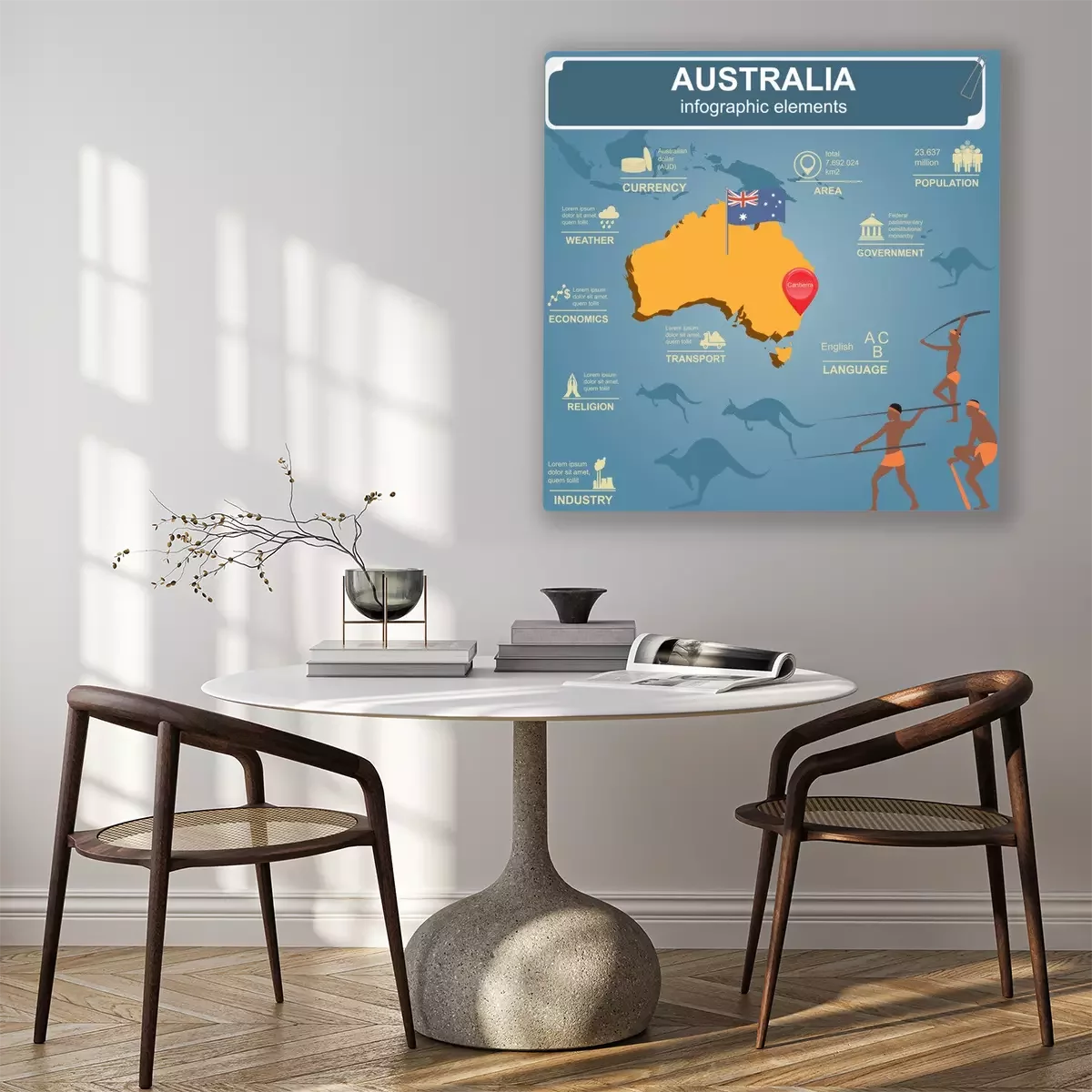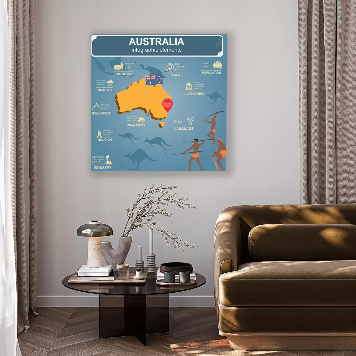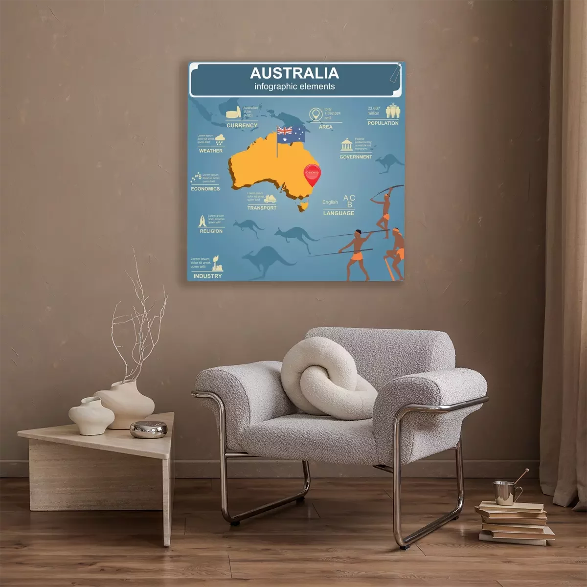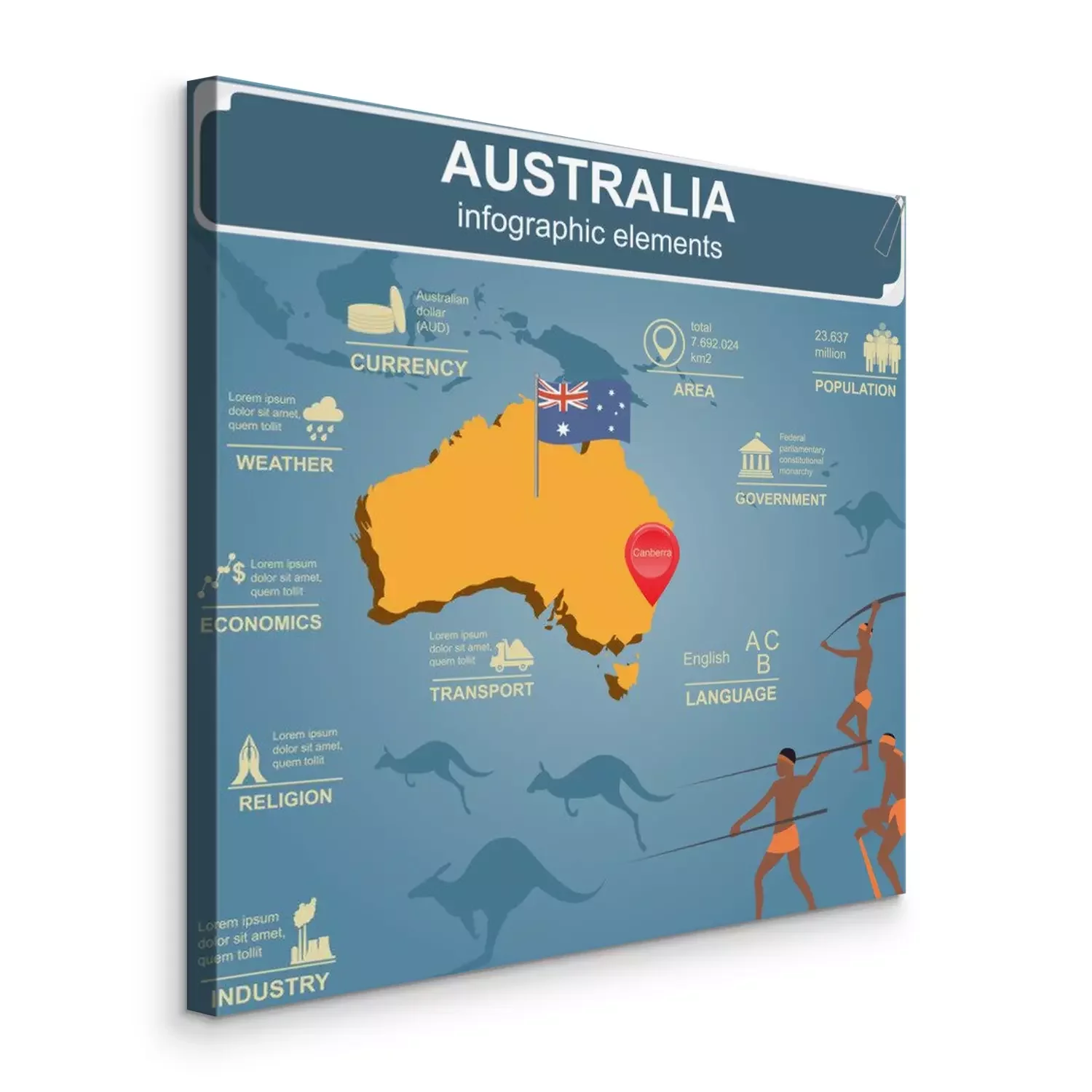 Canvas Australië infographics, statistische gegevens, bezienswaardigheden