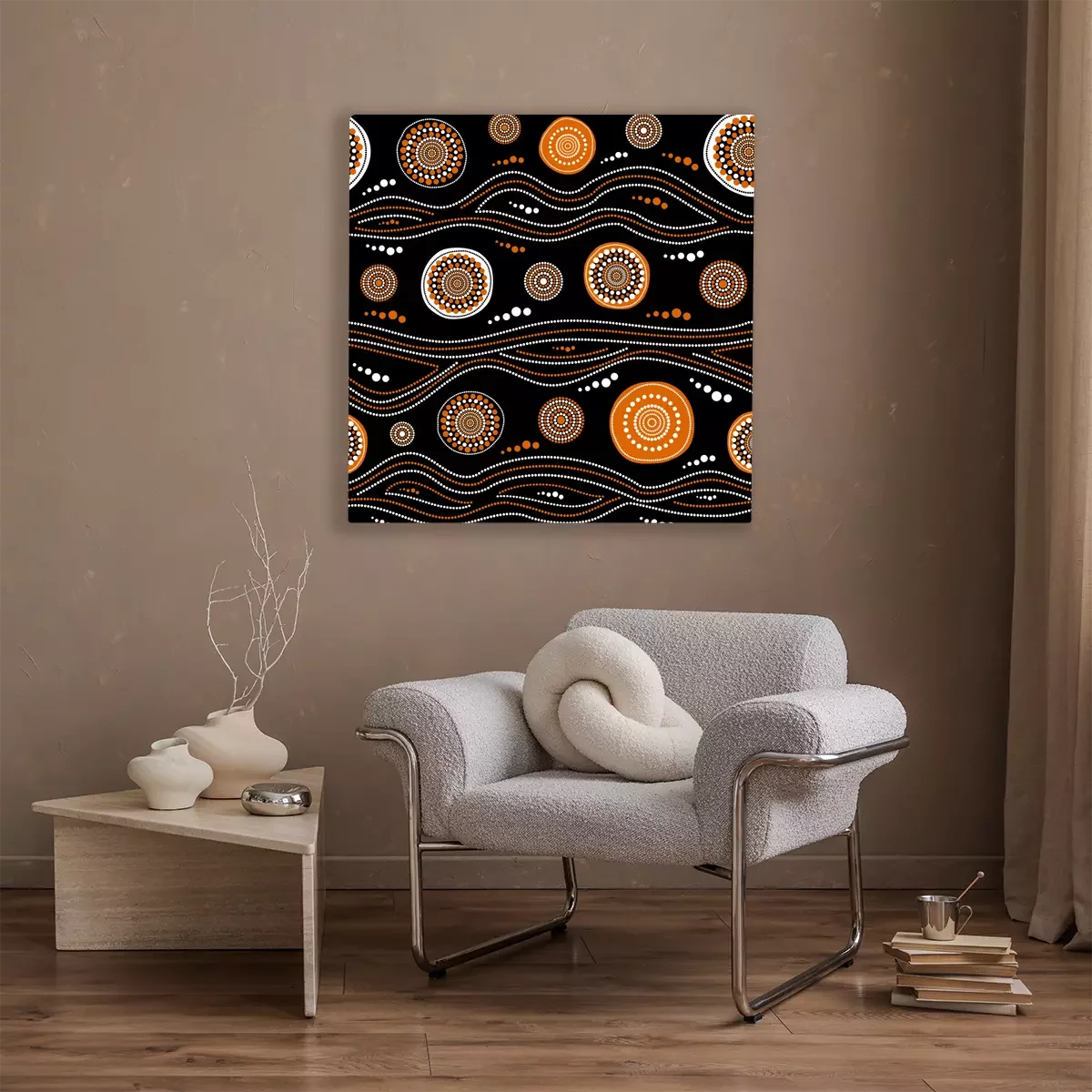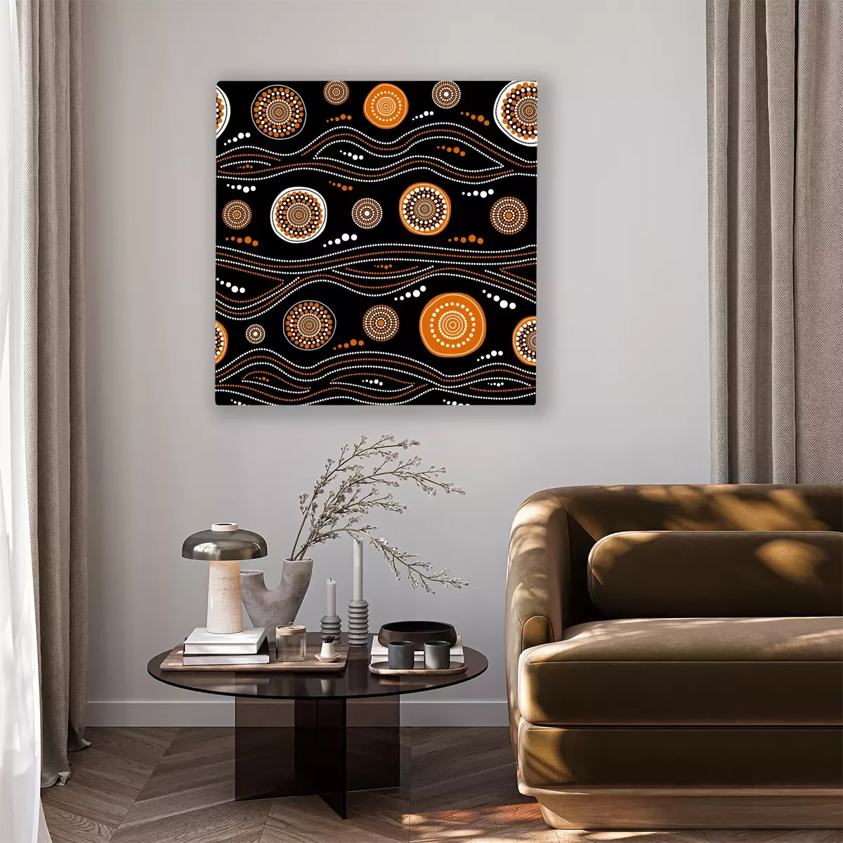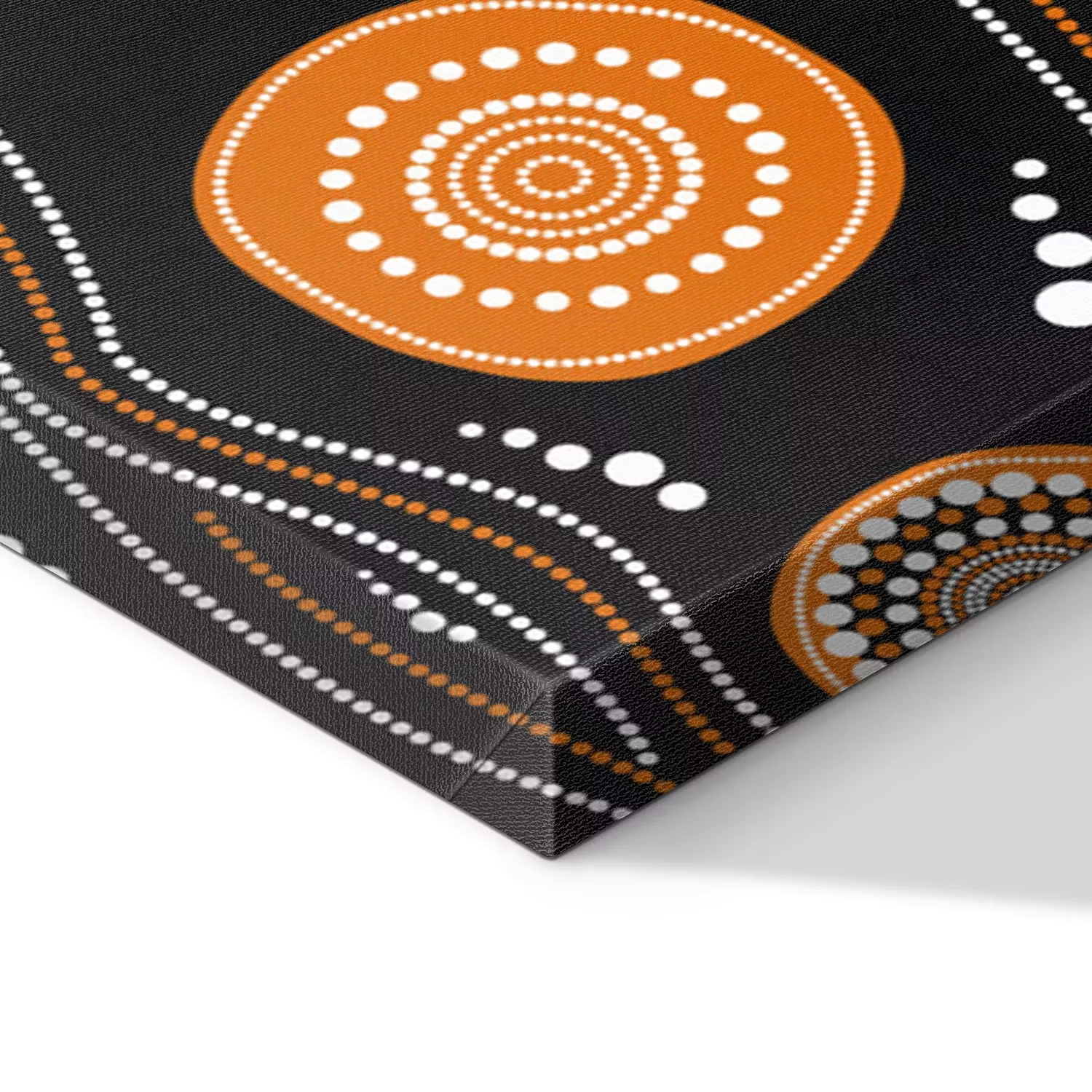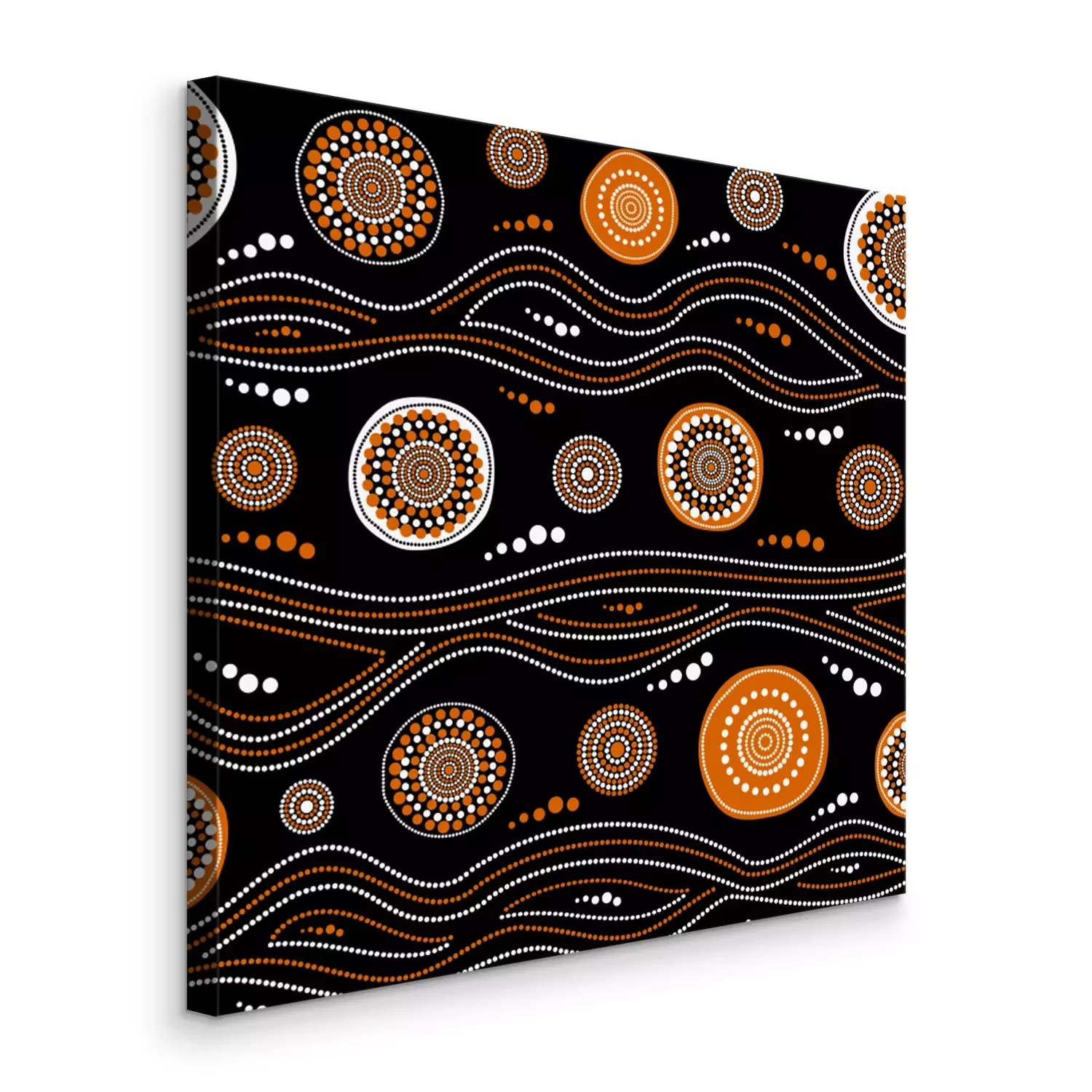 Canvas: Australische aboriginal naadloze vector patroon met gestippelde cirkels, ringen en kromme strepen