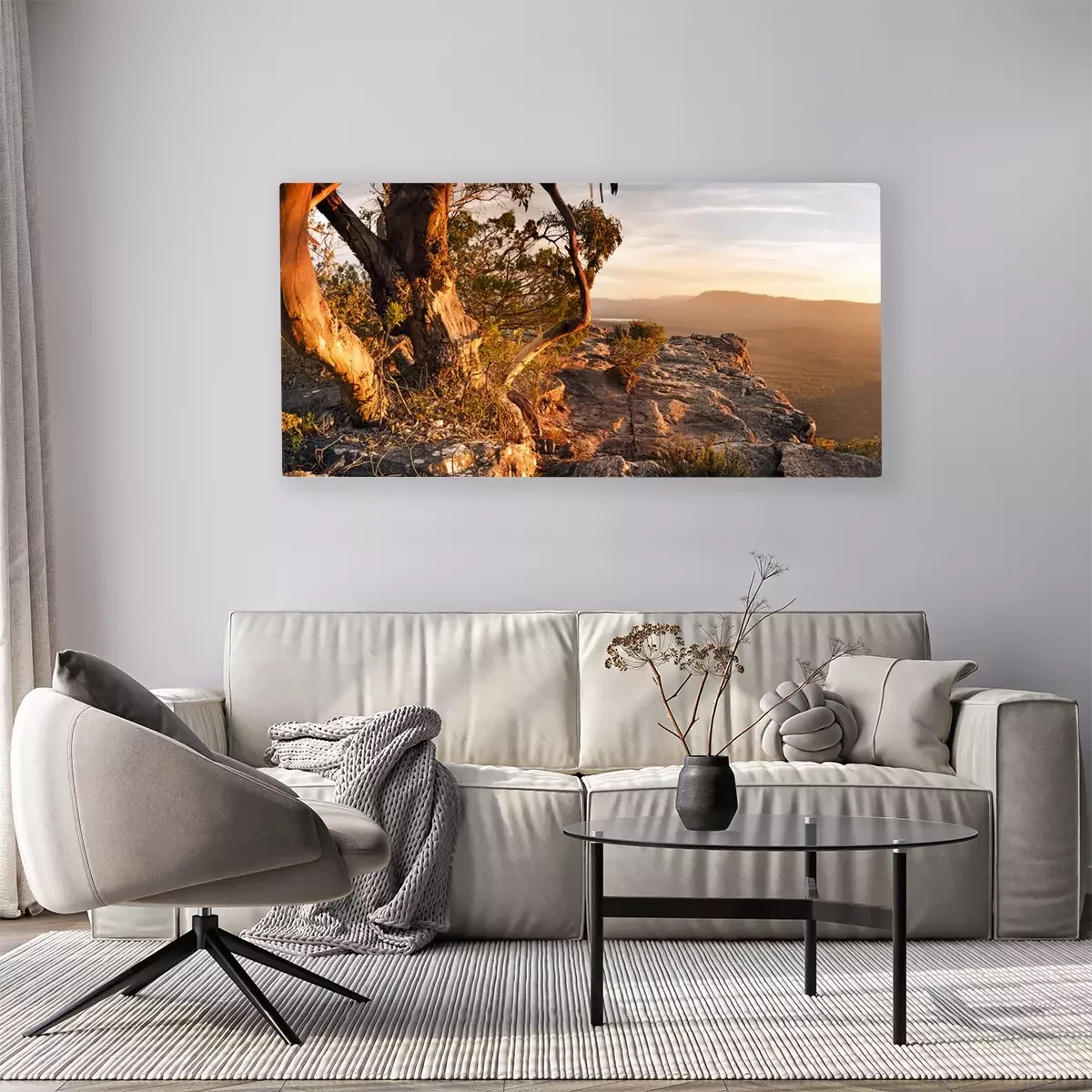 De print wordt aangebracht op hoogwaardig canvas dat op een schildersweefgetouw (spieraam) wordt gespannen. Omdat de print de zijranden bedekt, hoeft het ontwerp niet met een extra kader te worden omlijst. Wij raden ook composities aan die uit meerdere foto's bestaan en zo een coherente compositie vormen.