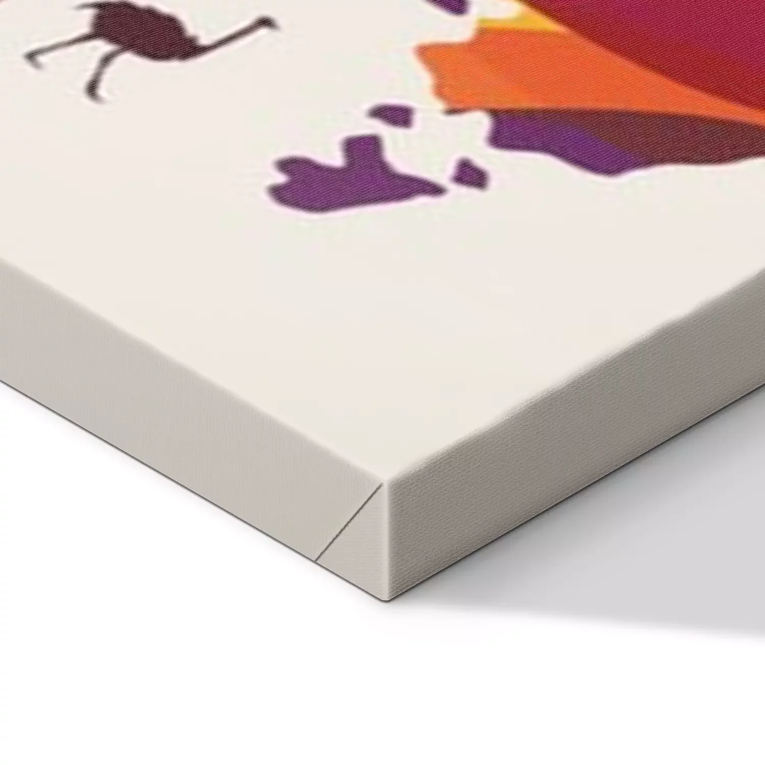 De print wordt aangebracht op hoogwaardig canvas dat op een schildersweefgetouw (spieraam) wordt gespannen. Omdat de print de zijranden bedekt, hoeft het ontwerp niet met een extra kader te worden omlijst. Wij raden ook composities aan die uit meerdere foto's bestaan en zo een coherente compositie vormen.