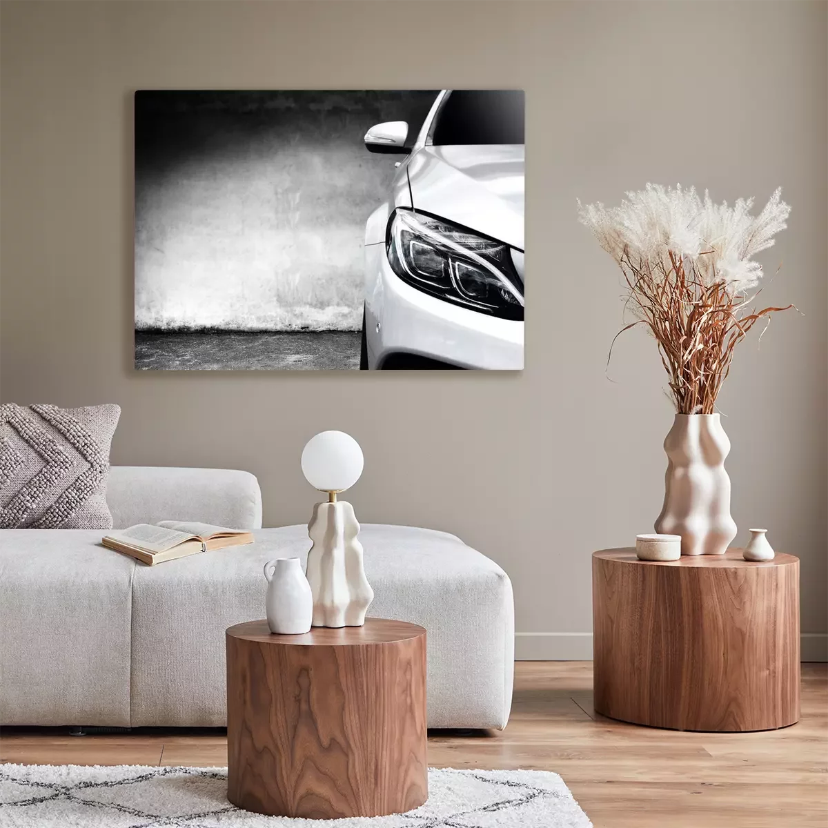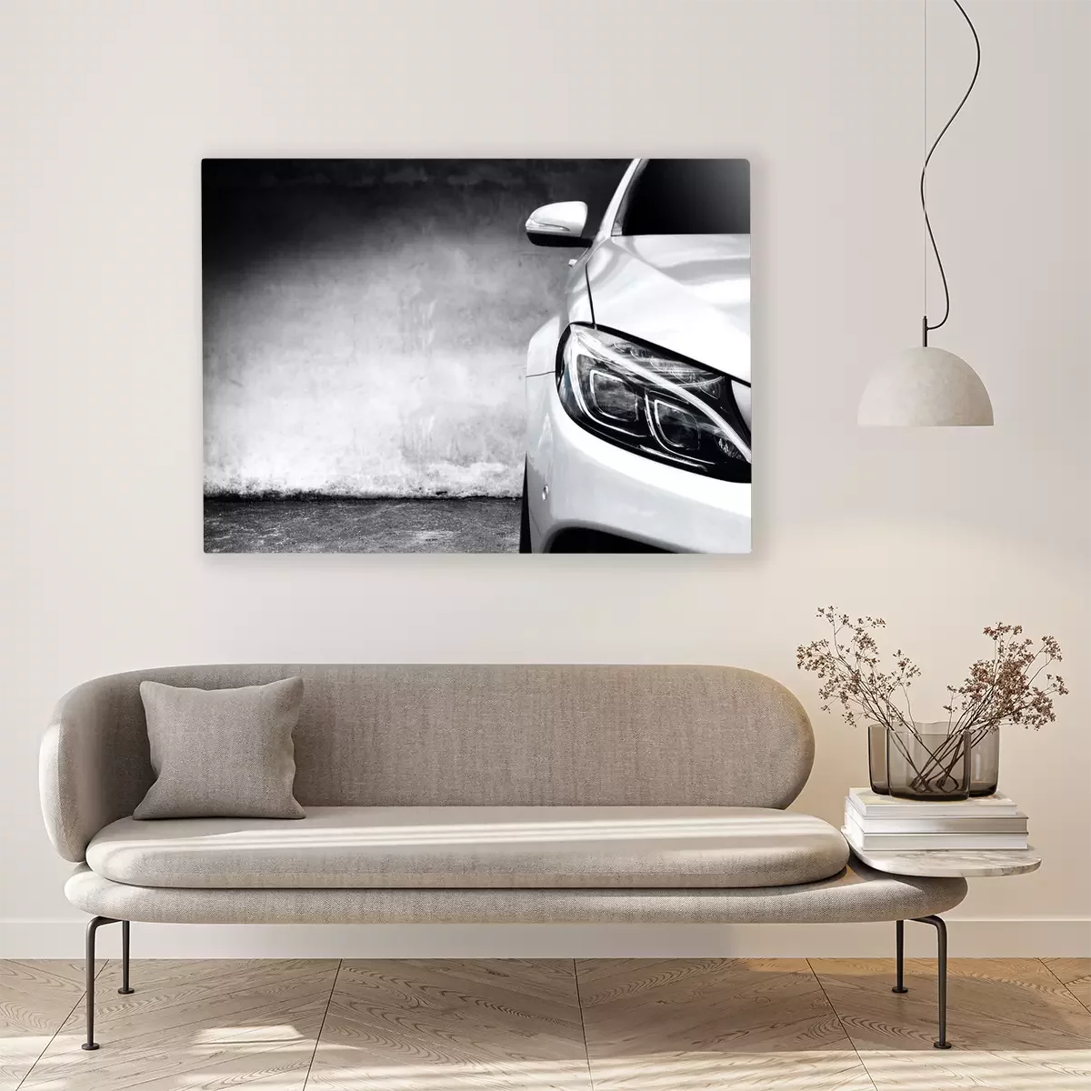 De print wordt aangebracht op hoogwaardig canvas dat op een schildersweefgetouw (spieraam) wordt gespannen. Omdat de print de zijranden bedekt, hoeft het ontwerp niet met een extra kader te worden omlijst. Wij raden ook composities aan die uit meerdere foto's bestaan en zo een coherente compositie vormen.