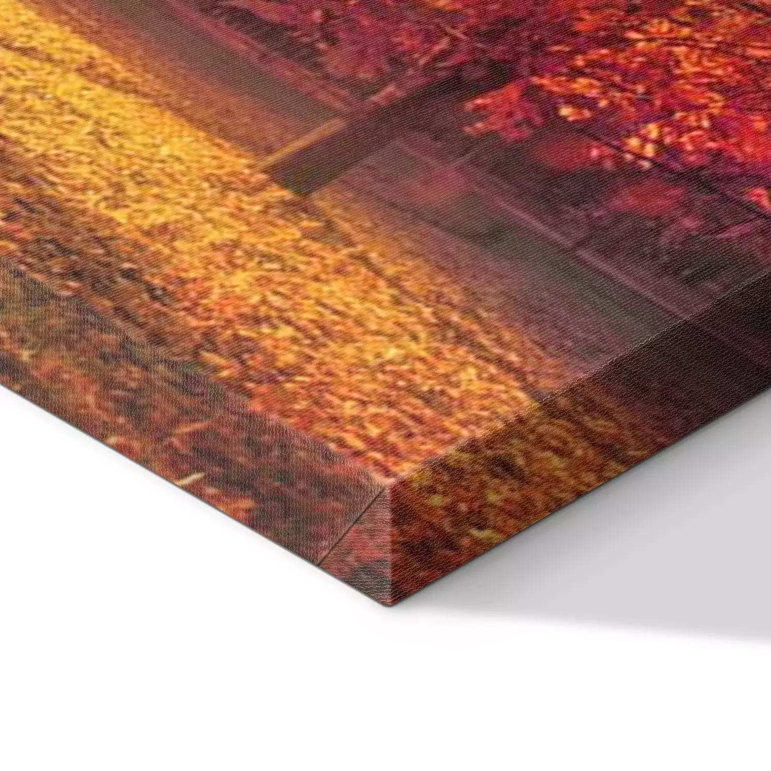 Canvas Autumn Landscape. Fall Scene.Trees and Leaves in Sunlight Rays