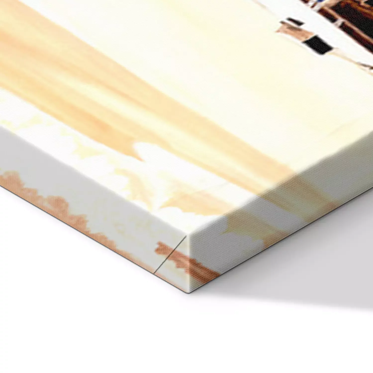 De print wordt aangebracht op hoogwaardig canvas dat op een schildersweefgetouw (spieraam) wordt gespannen. Omdat de print de zijranden bedekt, hoeft het ontwerp niet met een extra kader te worden omlijst. Wij raden ook composities aan die uit meerdere foto's bestaan en zo een coherente compositie vormen.