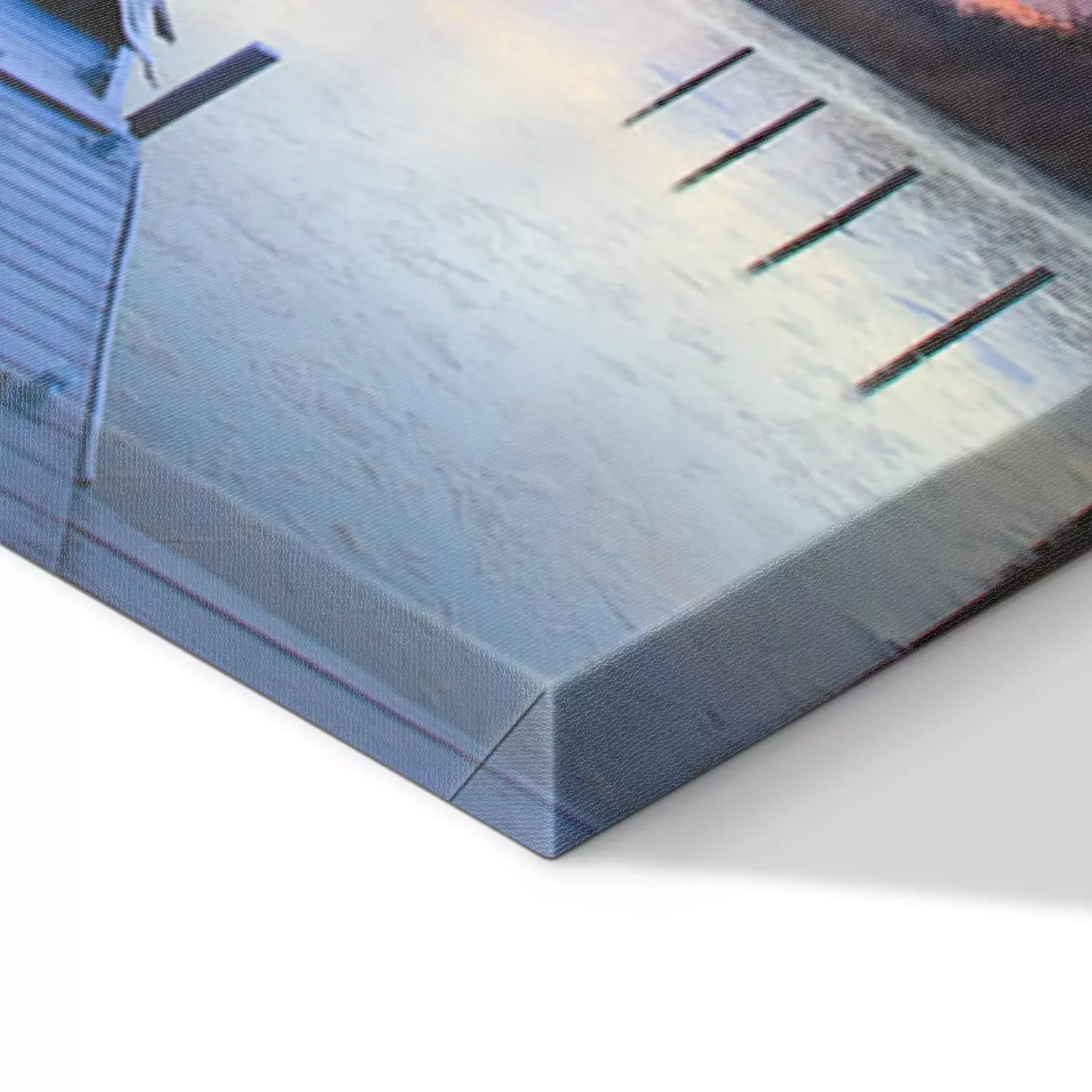 De print wordt aangebracht op hoogwaardig canvas dat op een schildersweefgetouw (spieraam) wordt gespannen. Omdat de print de zijranden bedekt, hoeft het ontwerp niet met een extra kader te worden omlijst. Wij raden ook composities aan die uit meerdere foto's bestaan en zo een coherente compositie vormen.