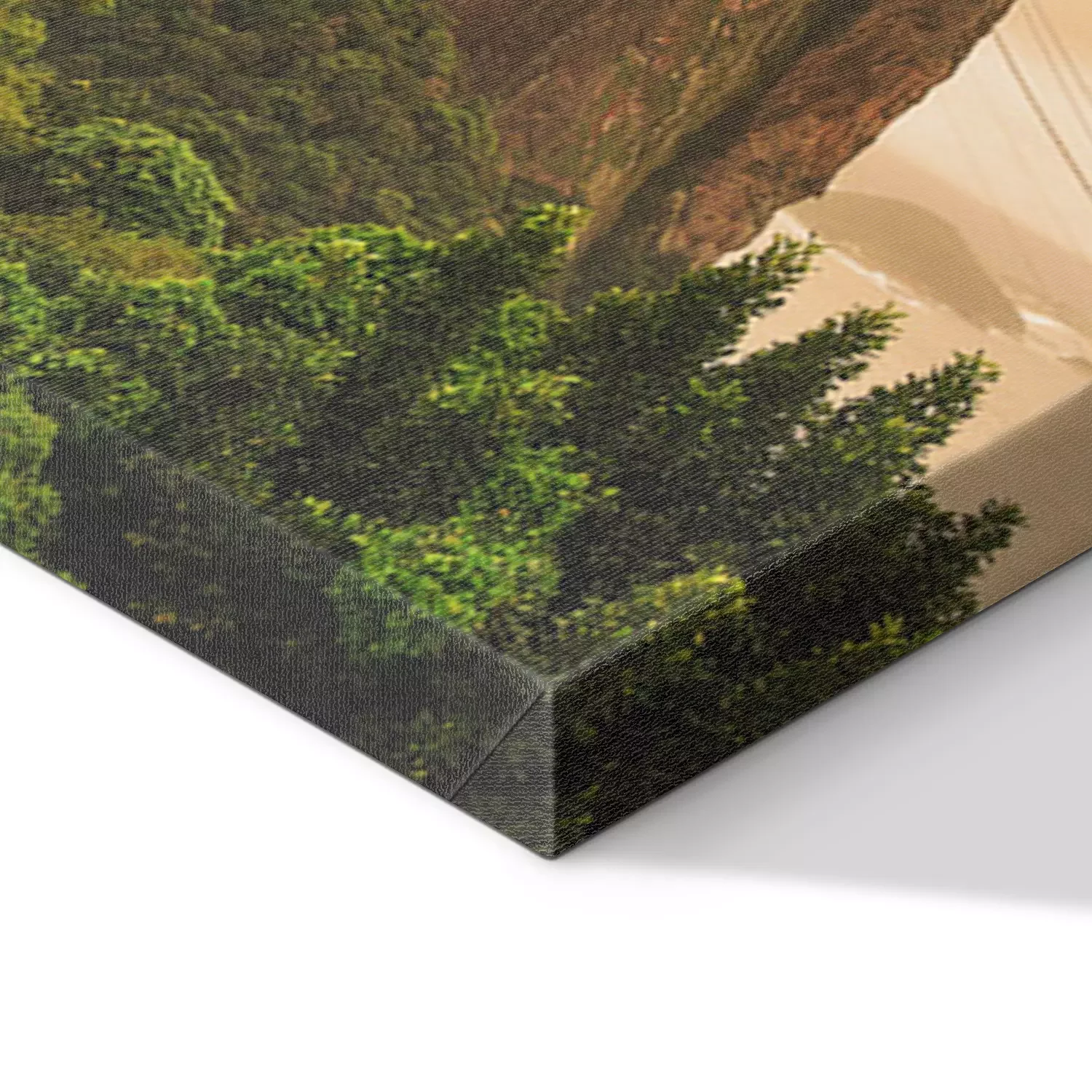 De print wordt aangebracht op hoogwaardig canvas dat op een schildersweefgetouw (spieraam) wordt gespannen. Omdat de print de zijranden bedekt, hoeft het ontwerp niet met een extra kader te worden omlijst. Wij raden ook composities aan die uit meerdere foto's bestaan en zo een coherente compositie vormen.