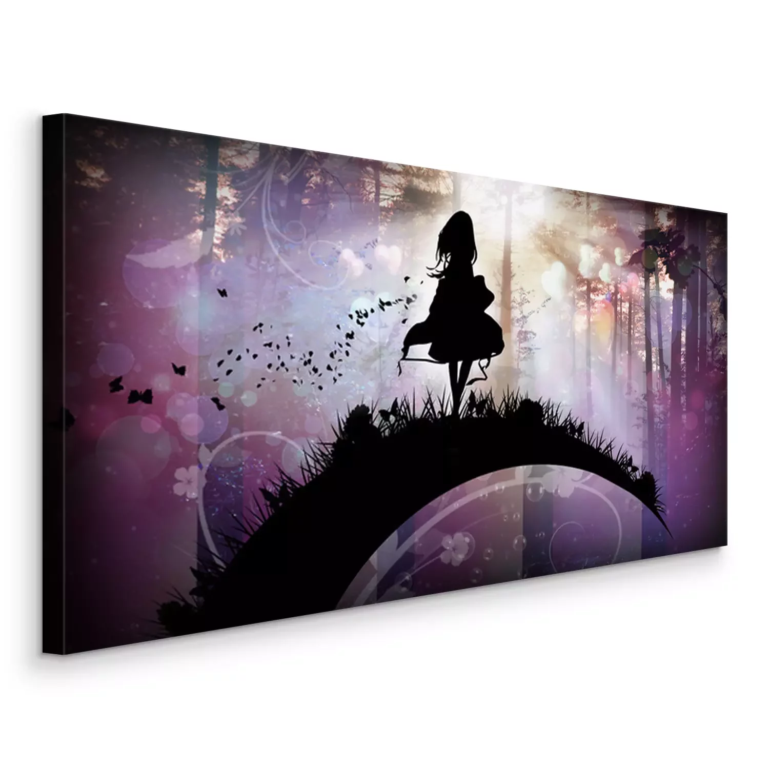 Canvas Avond in de magische bos silhouet art fotomanipulatie