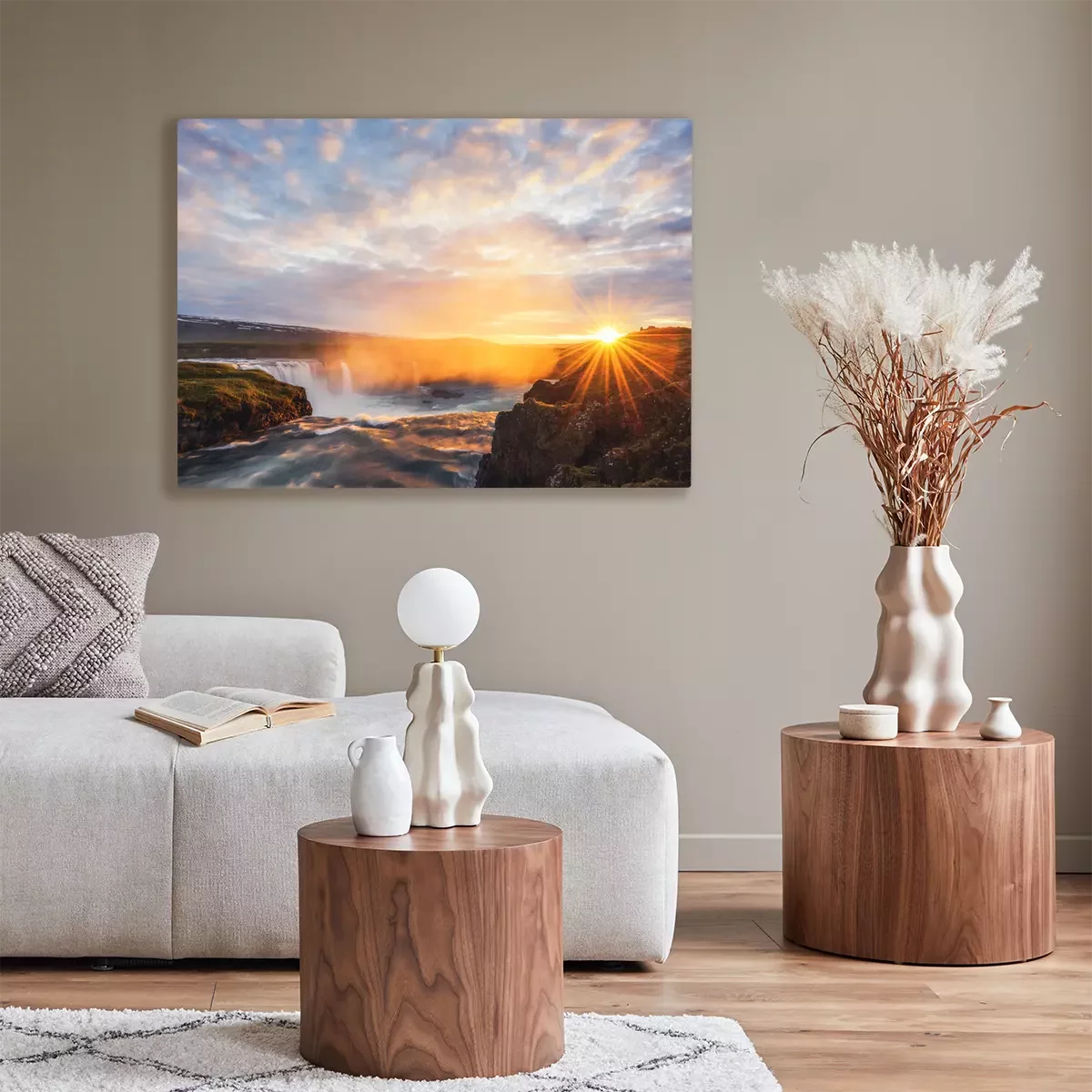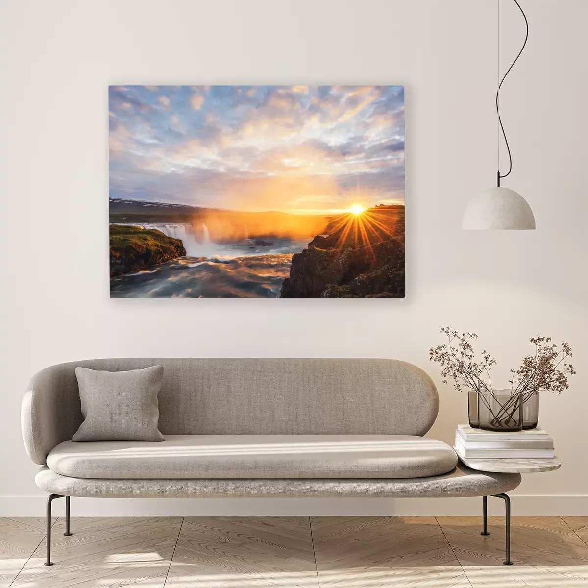 De print wordt aangebracht op hoogwaardig canvas dat op een schildersweefgetouw (spieraam) wordt gespannen. Omdat de print de zijranden bedekt, hoeft het ontwerp niet met een extra kader te worden omlijst. Wij raden ook composities aan die uit meerdere foto's bestaan en zo een coherente compositie vormen.