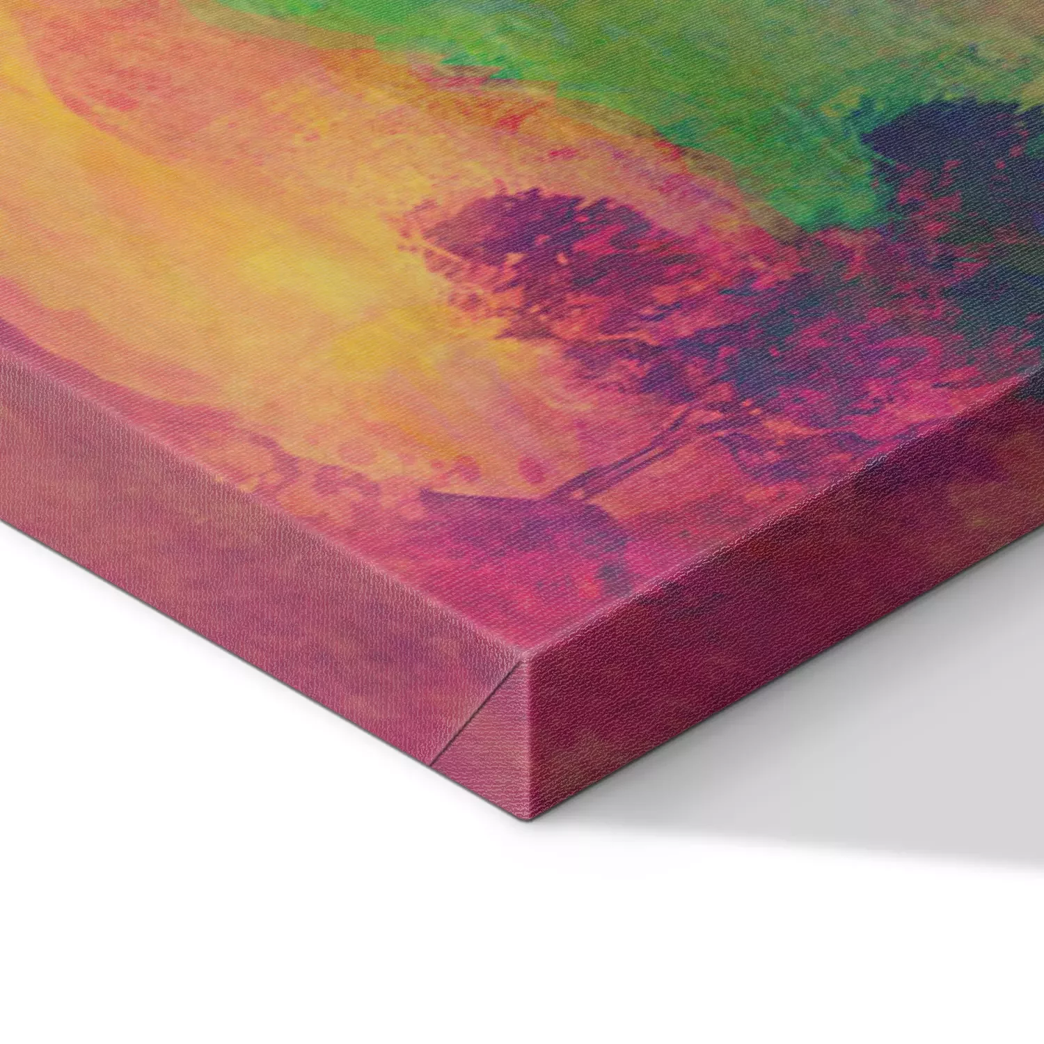 De print wordt aangebracht op hoogwaardig canvas dat op een schildersweefgetouw (spieraam) wordt gespannen. Omdat de print de zijranden bedekt, hoeft het ontwerp niet met een extra kader te worden omlijst. Wij raden ook composities aan die uit meerdere foto's bestaan en zo een coherente compositie vormen.