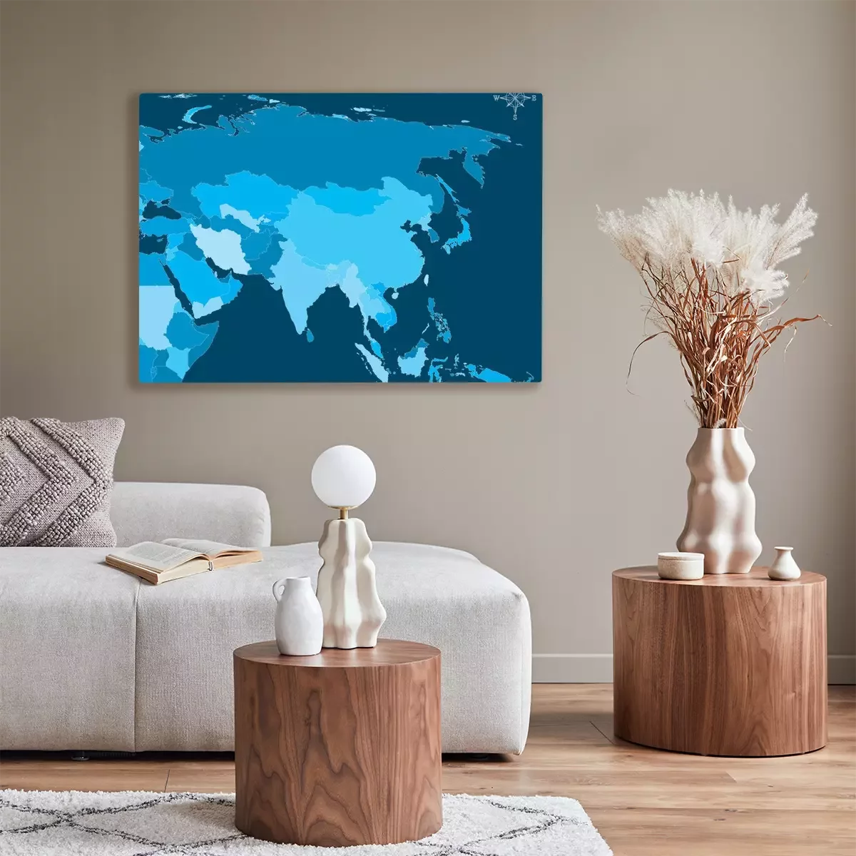 Canvas Azië Kaart - Vector Kaart van Azië met noordpijl