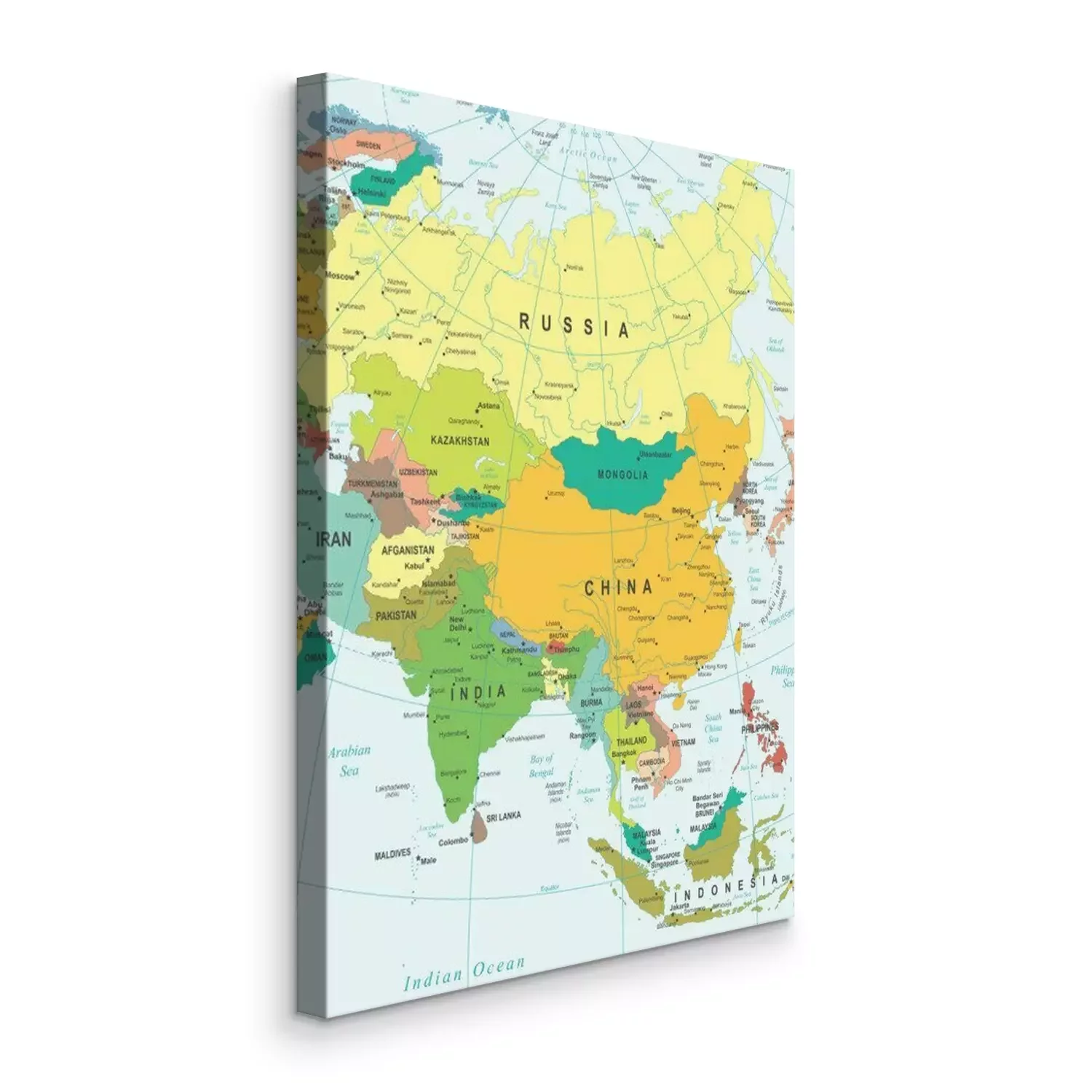 Canvas Azië kaart - zeer gedetailleerde vector illustratie.