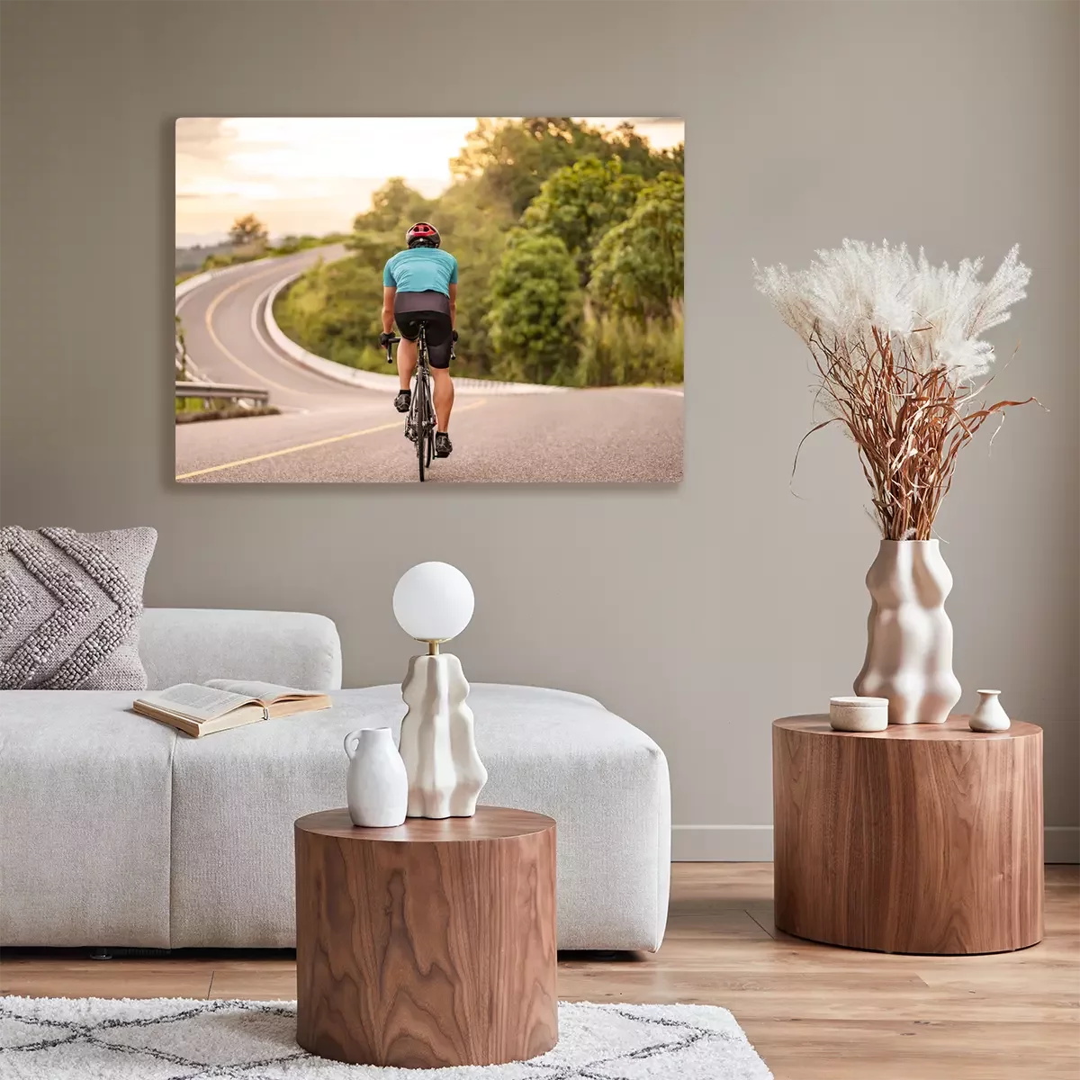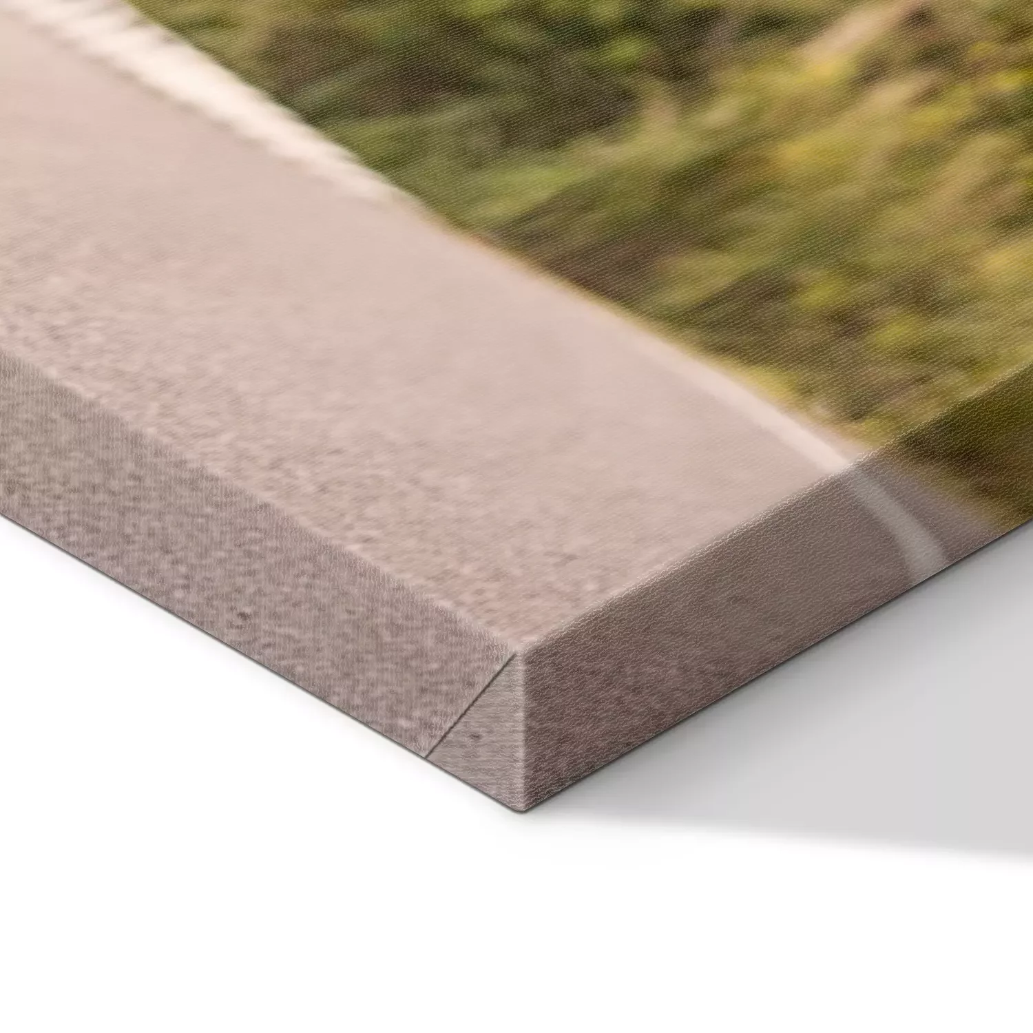 De print wordt aangebracht op hoogwaardig canvas dat op een schildersweefgetouw (spieraam) wordt gespannen. Omdat de print de zijranden bedekt, hoeft het ontwerp niet met een extra kader te worden omlijst. Wij raden ook composities aan die uit meerdere foto's bestaan en zo een coherente compositie vormen.