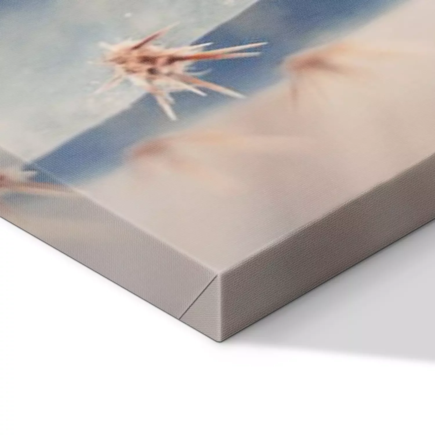 De print wordt aangebracht op hoogwaardig canvas dat op een schildersweefgetouw (spieraam) wordt gespannen. Omdat de print de zijranden bedekt, hoeft het ontwerp niet met een extra kader te worden omlijst. Wij raden ook composities aan die uit meerdere foto's bestaan en zo een coherente compositie vormen.