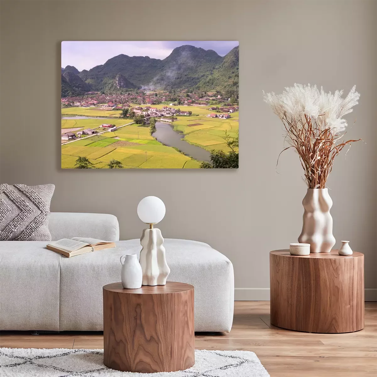 De print wordt aangebracht op hoogwaardig canvas dat op een schildersweefgetouw (spieraam) wordt gespannen. Omdat de print de zijranden bedekt, hoeft het ontwerp niet met een extra kader te worden omlijst. Wij raden ook composities aan die uit meerdere foto's bestaan en zo een coherente compositie vormen.