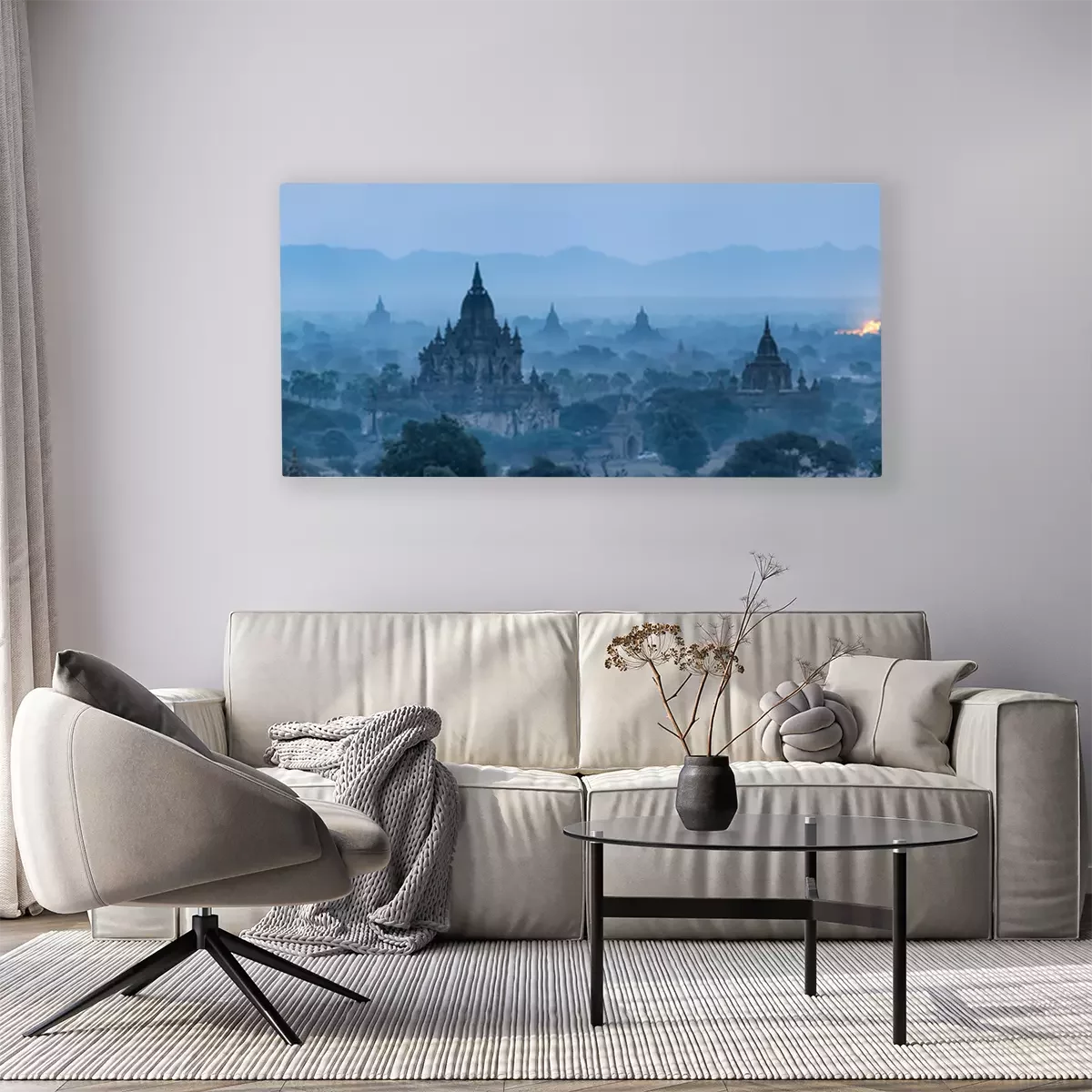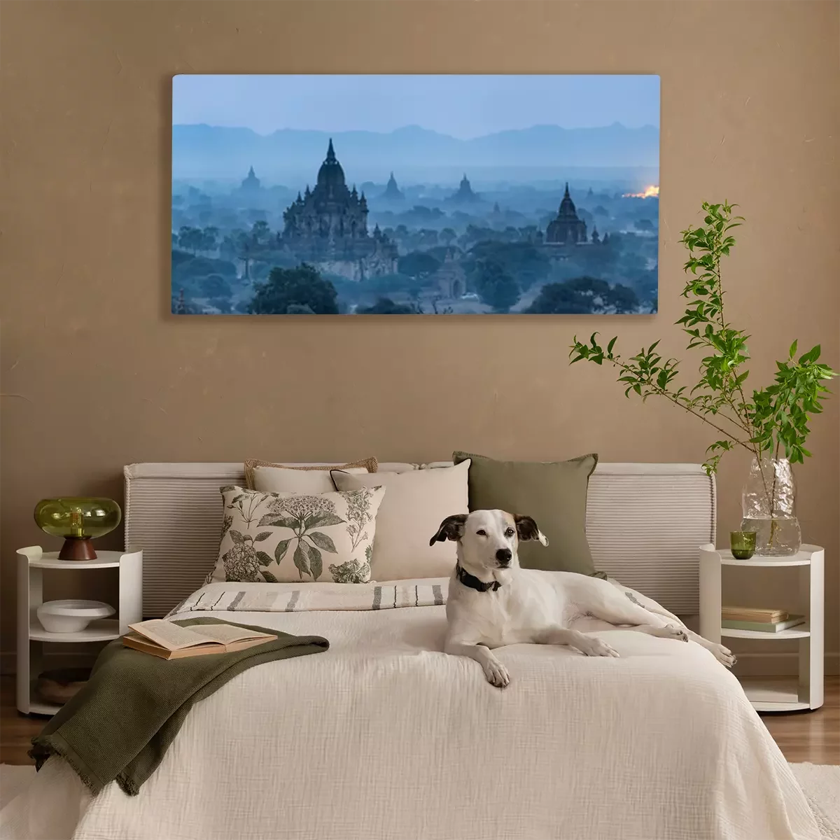 Canvas: Bagan panorama at night with golden Shwezigon pagoda, Myanmar