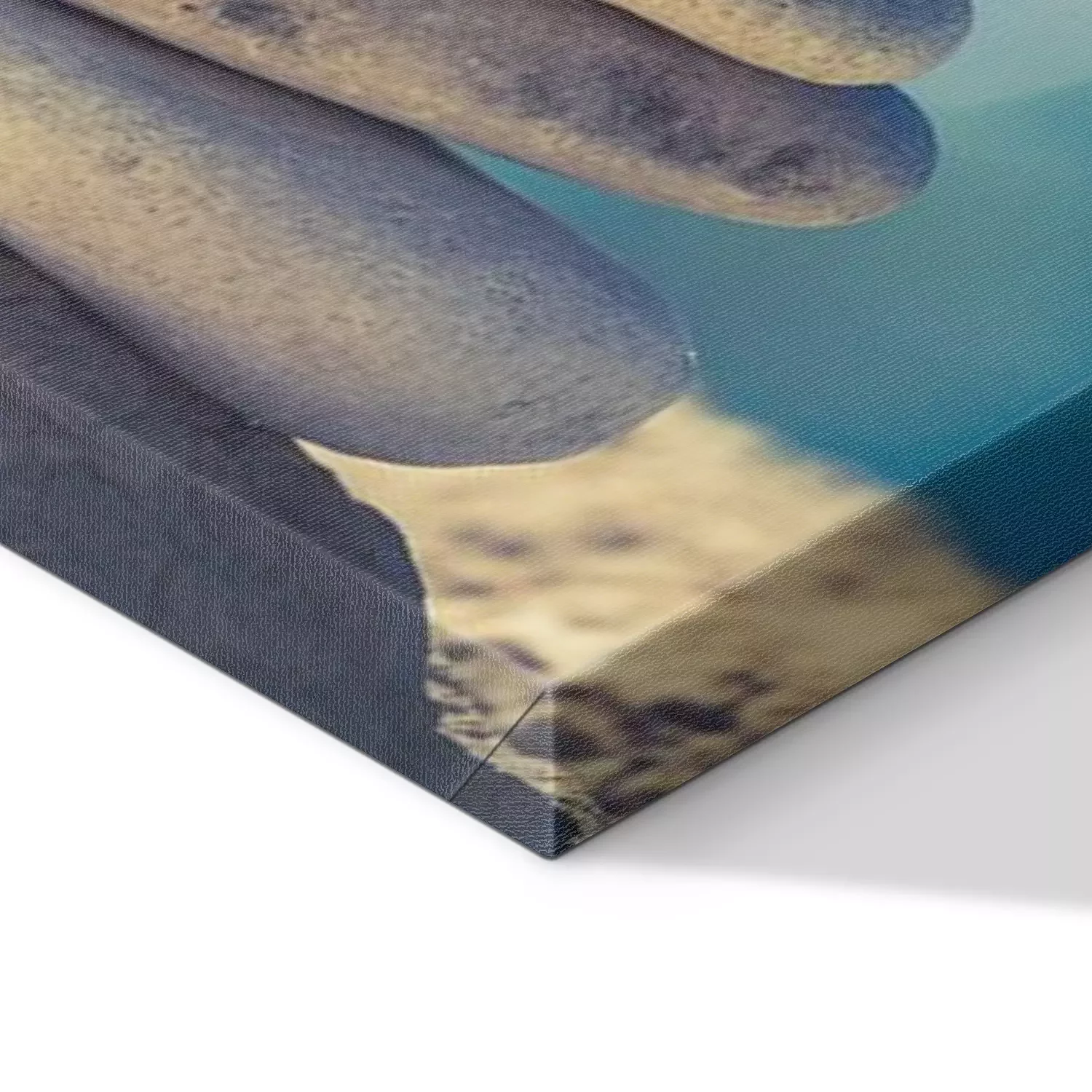 De print wordt aangebracht op hoogwaardig canvas dat op een schildersweefgetouw (spieraam) wordt gespannen. Omdat de print de zijranden bedekt, hoeft het ontwerp niet met een extra kader te worden omlijst. Wij raden ook composities aan die uit meerdere foto's bestaan en zo een coherente compositie vormen.