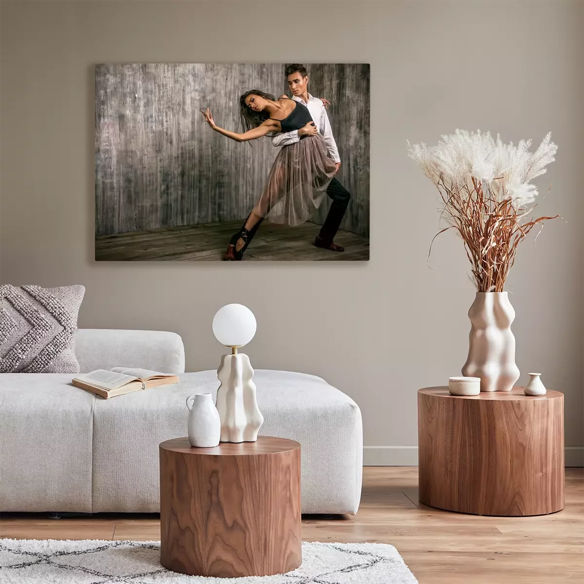 De print wordt aangebracht op hoogwaardig canvas dat op een schildersweefgetouw (spieraam) wordt gespannen. Omdat de print de zijranden bedekt, hoeft het ontwerp niet met een extra kader te worden omlijst. Wij raden ook composities aan die uit meerdere foto's bestaan en zo een coherente compositie vormen.