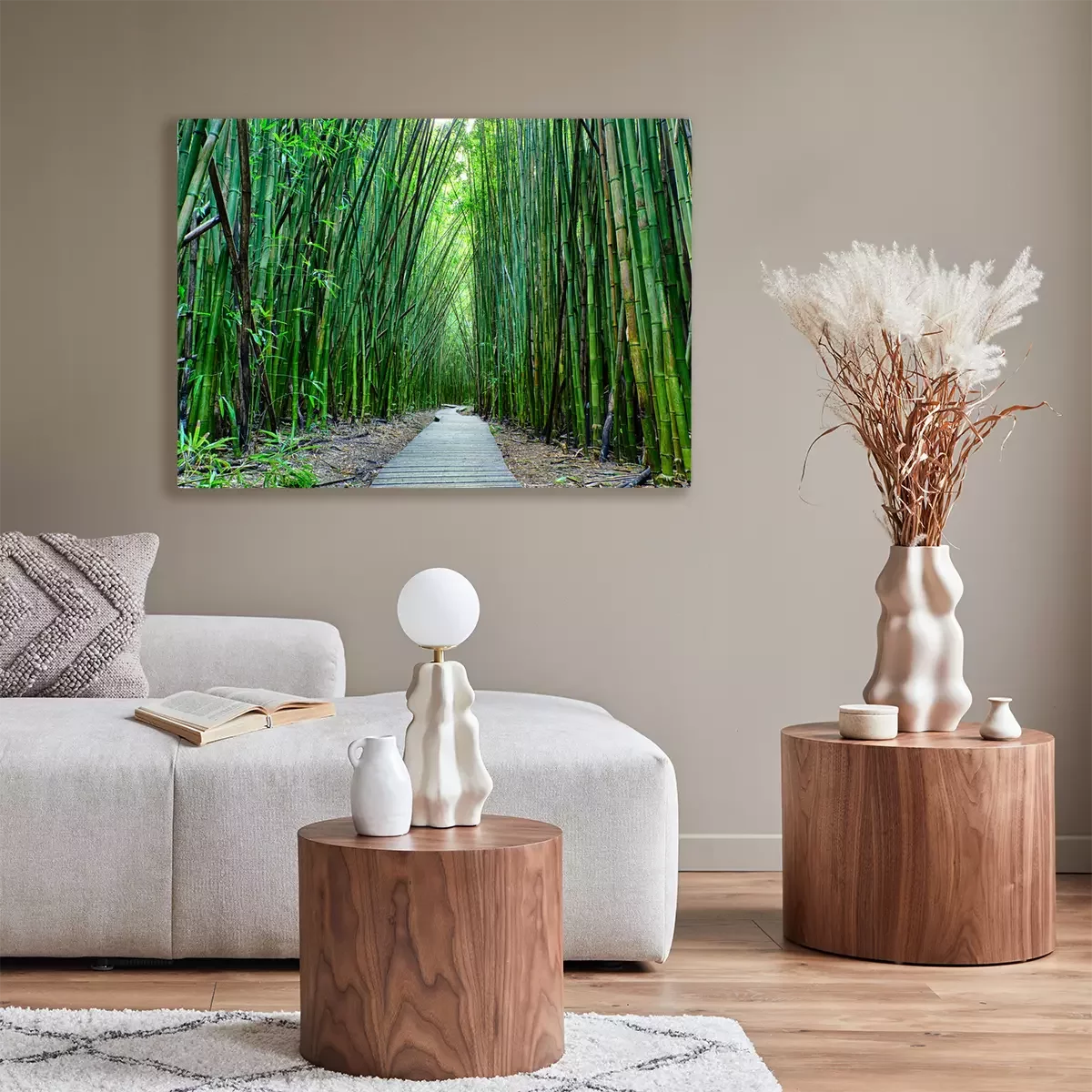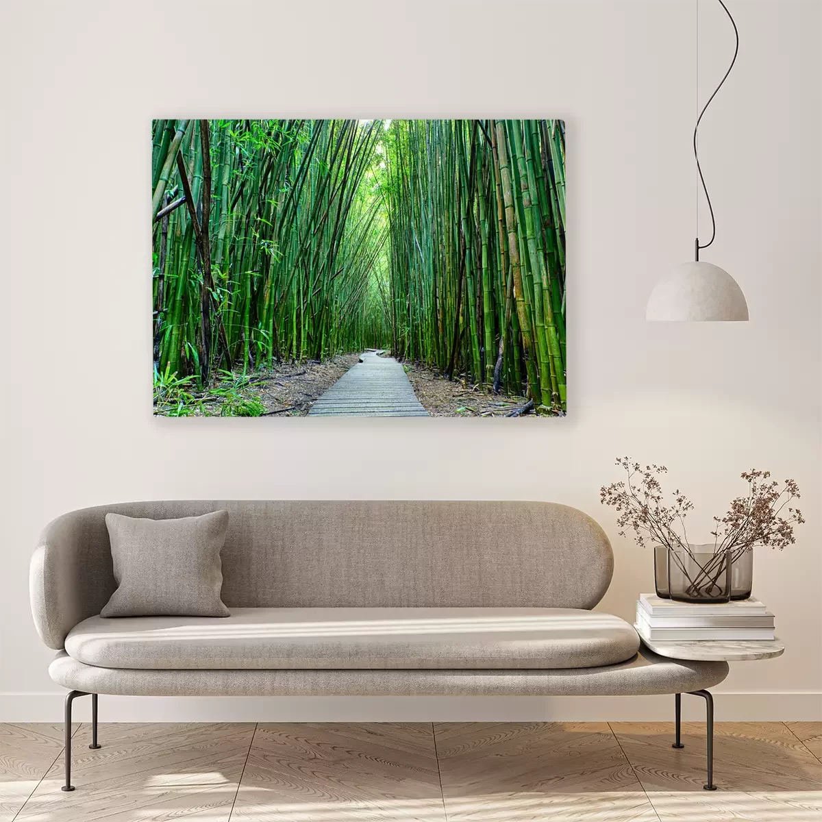 De print wordt aangebracht op hoogwaardig canvas dat op een schildersweefgetouw (spieraam) wordt gespannen. Omdat de print de zijranden bedekt, hoeft het ontwerp niet met een extra kader te worden omlijst. Wij raden ook composities aan die uit meerdere foto's bestaan en zo een coherente compositie vormen.