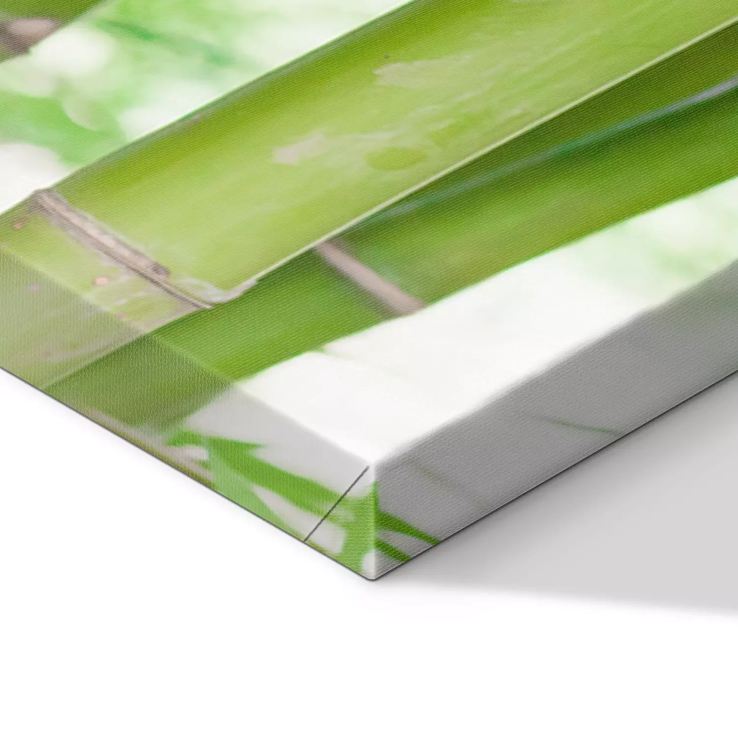De print wordt aangebracht op hoogwaardig canvas dat op een schildersweefgetouw (spieraam) wordt gespannen. Omdat de print de zijranden bedekt, hoeft het ontwerp niet met een extra kader te worden omlijst. Wij raden ook composities aan die uit meerdere foto's bestaan en zo een coherente compositie vormen.
