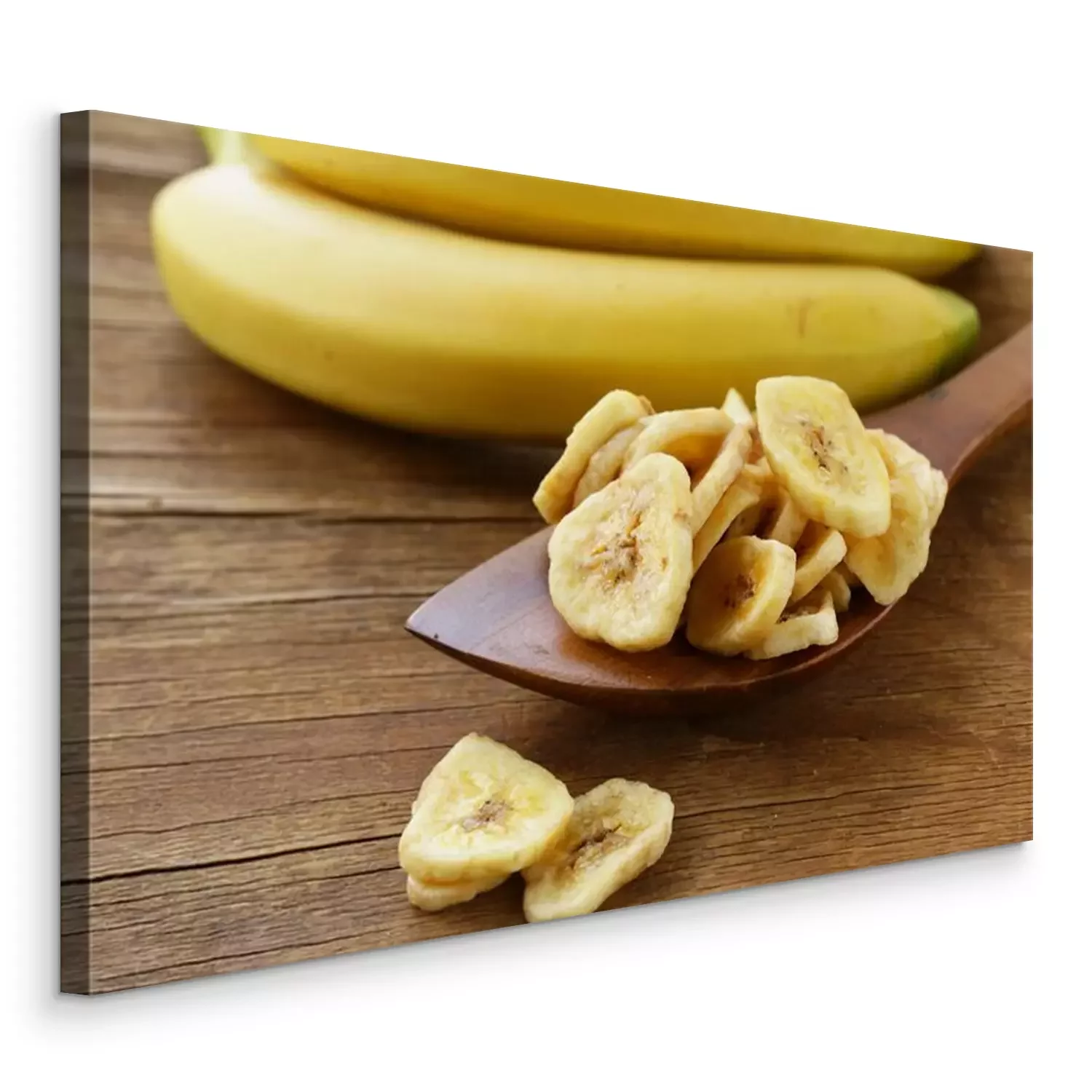 Canvas: bananenchips, gedroogd fruit op een houten tafel
