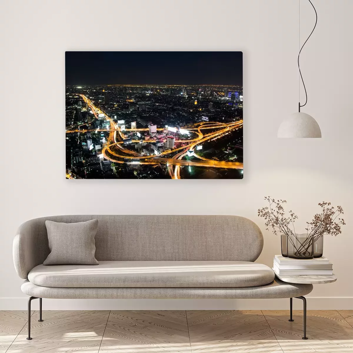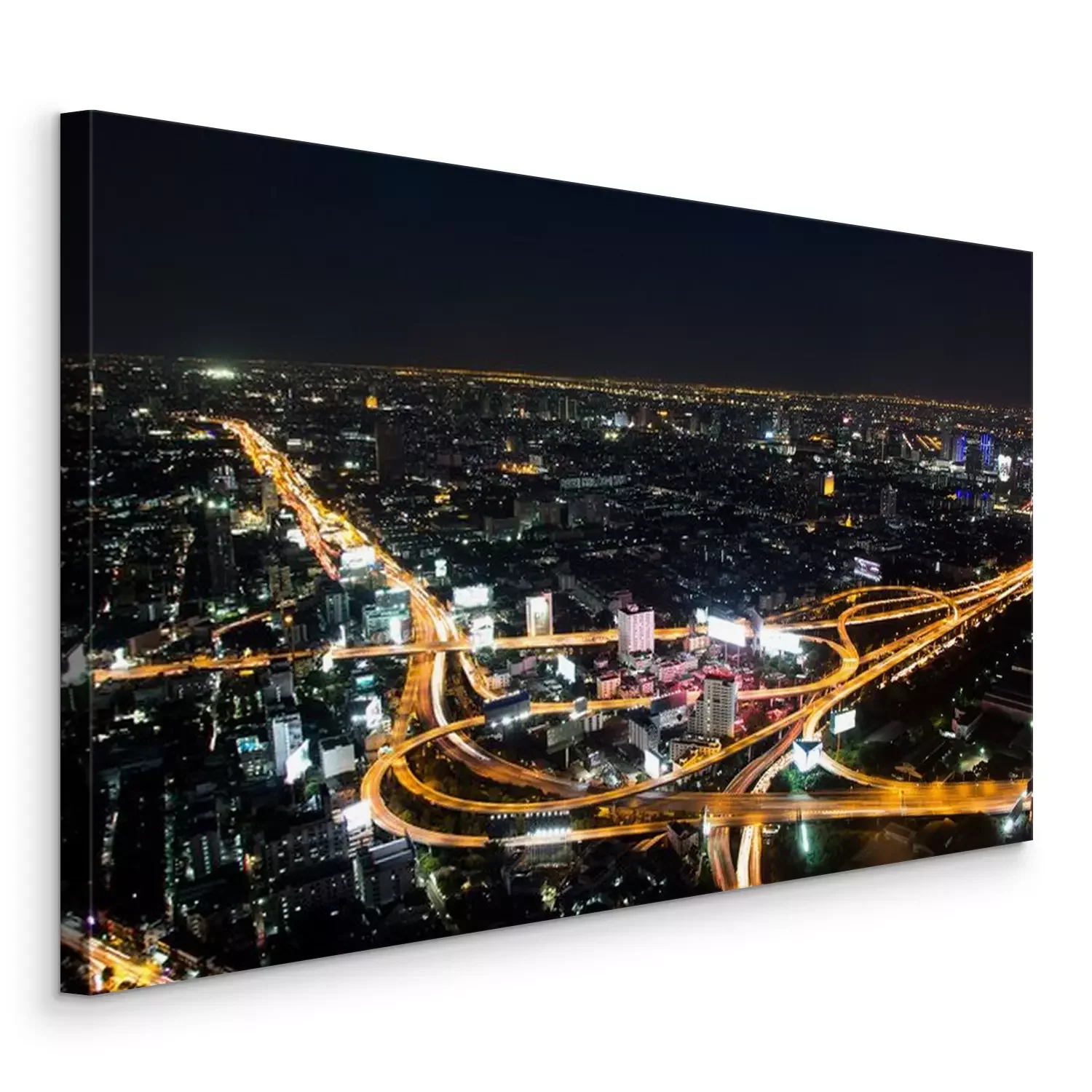 Canvas: Bangkok Expressway en Highway bovenaanzicht in de nacht, Thailand