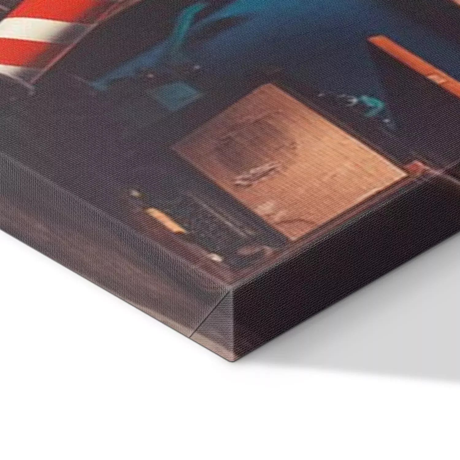 De print wordt aangebracht op hoogwaardig canvas dat op een schildersweefgetouw (spieraam) wordt gespannen. Omdat de print de zijranden bedekt, hoeft het ontwerp niet met een extra kader te worden omlijst. Wij raden ook composities aan die uit meerdere foto's bestaan en zo een coherente compositie vormen.
