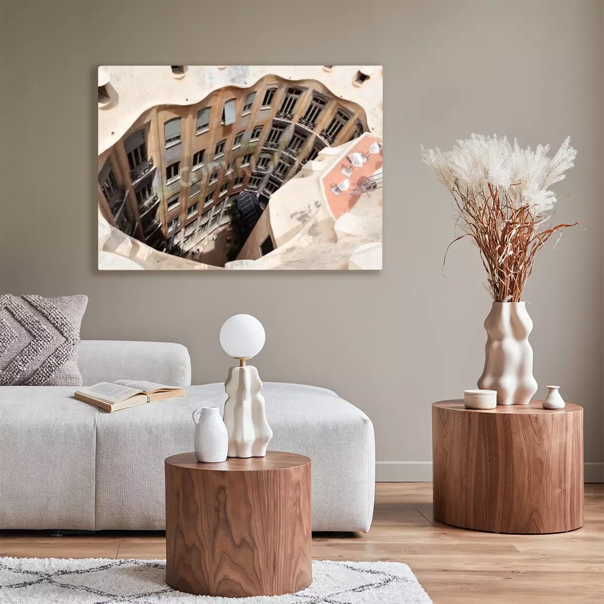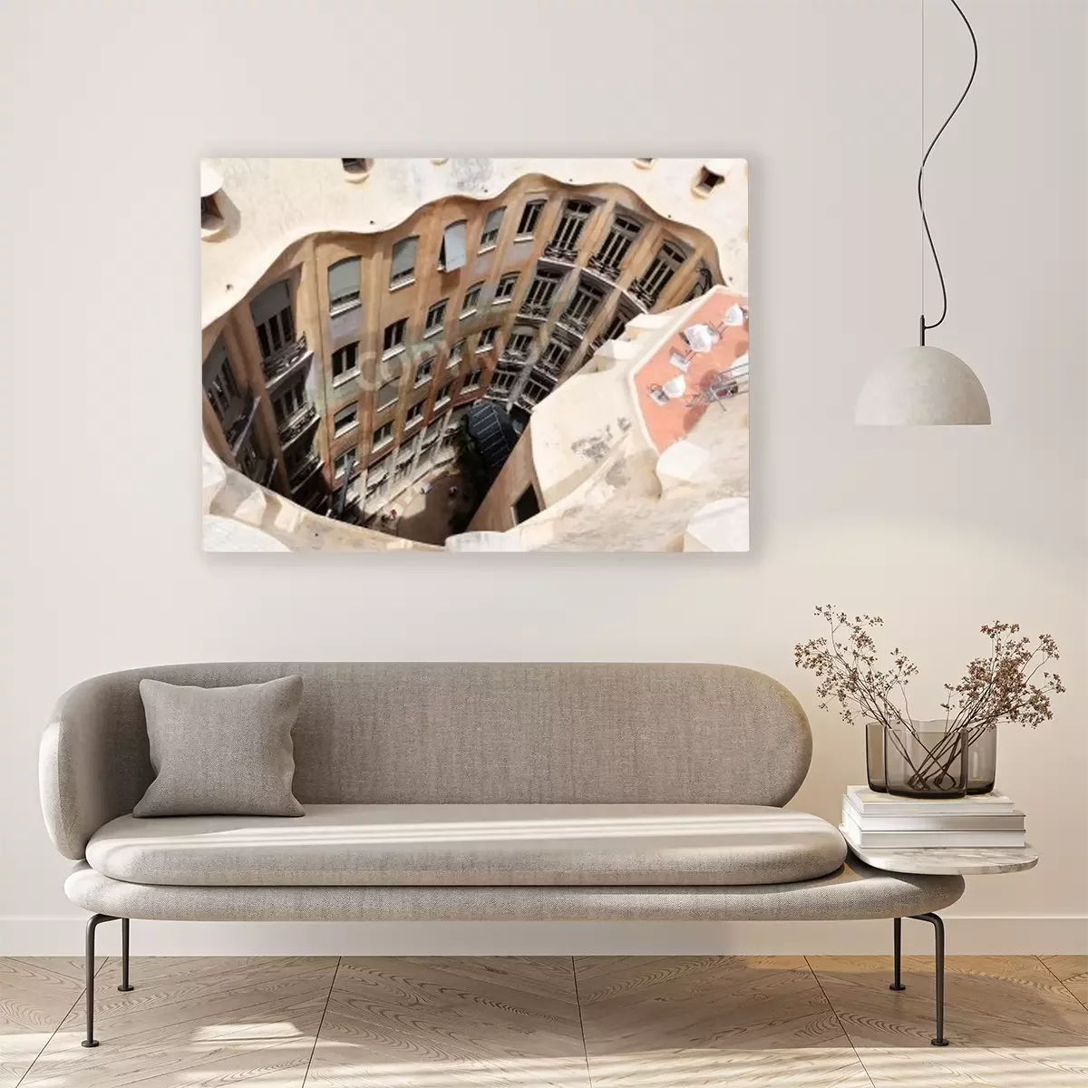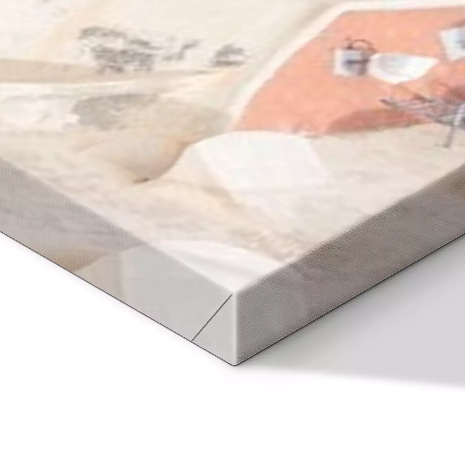 De print wordt aangebracht op hoogwaardig canvas dat op een schildersweefgetouw (spieraam) wordt gespannen. Omdat de print de zijranden bedekt, hoeft het ontwerp niet met een extra kader te worden omlijst. Wij raden ook composities aan die uit meerdere foto's bestaan en zo een coherente compositie vormen.