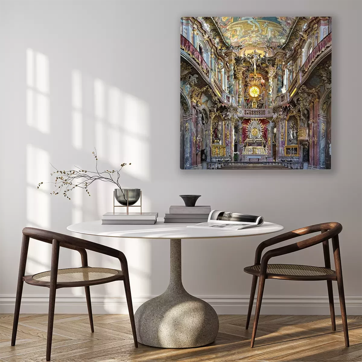 De print wordt aangebracht op hoogwaardig canvas dat op een schildersweefgetouw (spieraam) wordt gespannen. Omdat de print de zijranden bedekt, hoeft het ontwerp niet met een extra kader te worden omlijst. Wij raden ook composities aan die uit meerdere foto's bestaan en zo een coherente compositie vormen.