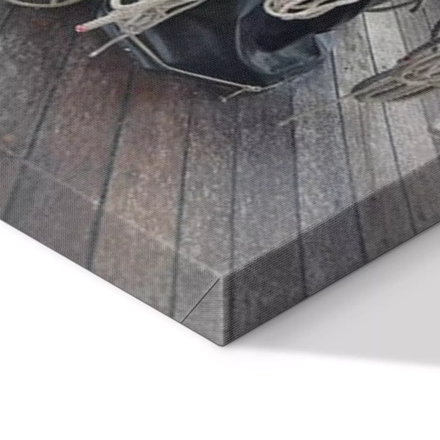 De print wordt aangebracht op hoogwaardig canvas dat op een schildersweefgetouw (spieraam) wordt gespannen. Omdat de print de zijranden bedekt, hoeft het ontwerp niet met een extra kader te worden omlijst. Wij raden ook composities aan die uit meerdere foto's bestaan en zo een coherente compositie vormen.