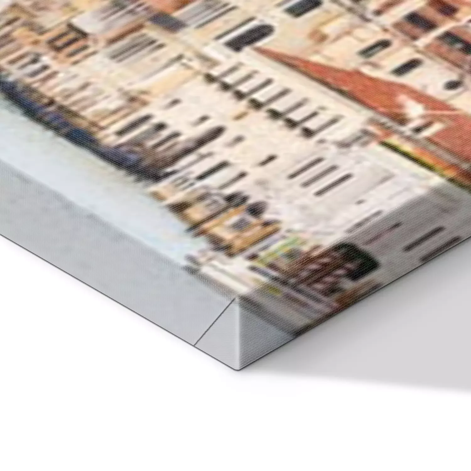 De print wordt aangebracht op hoogwaardig canvas dat op een schildersweefgetouw (spieraam) wordt gespannen. Omdat de print de zijranden bedekt, hoeft het ontwerp niet met een extra kader te worden omlijst. Wij raden ook composities aan die uit meerdere foto's bestaan en zo een coherente compositie vormen.