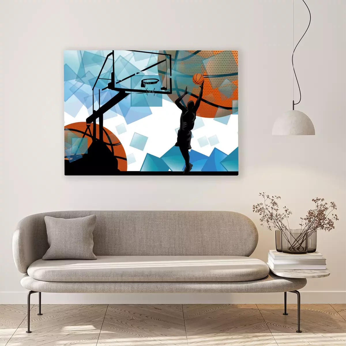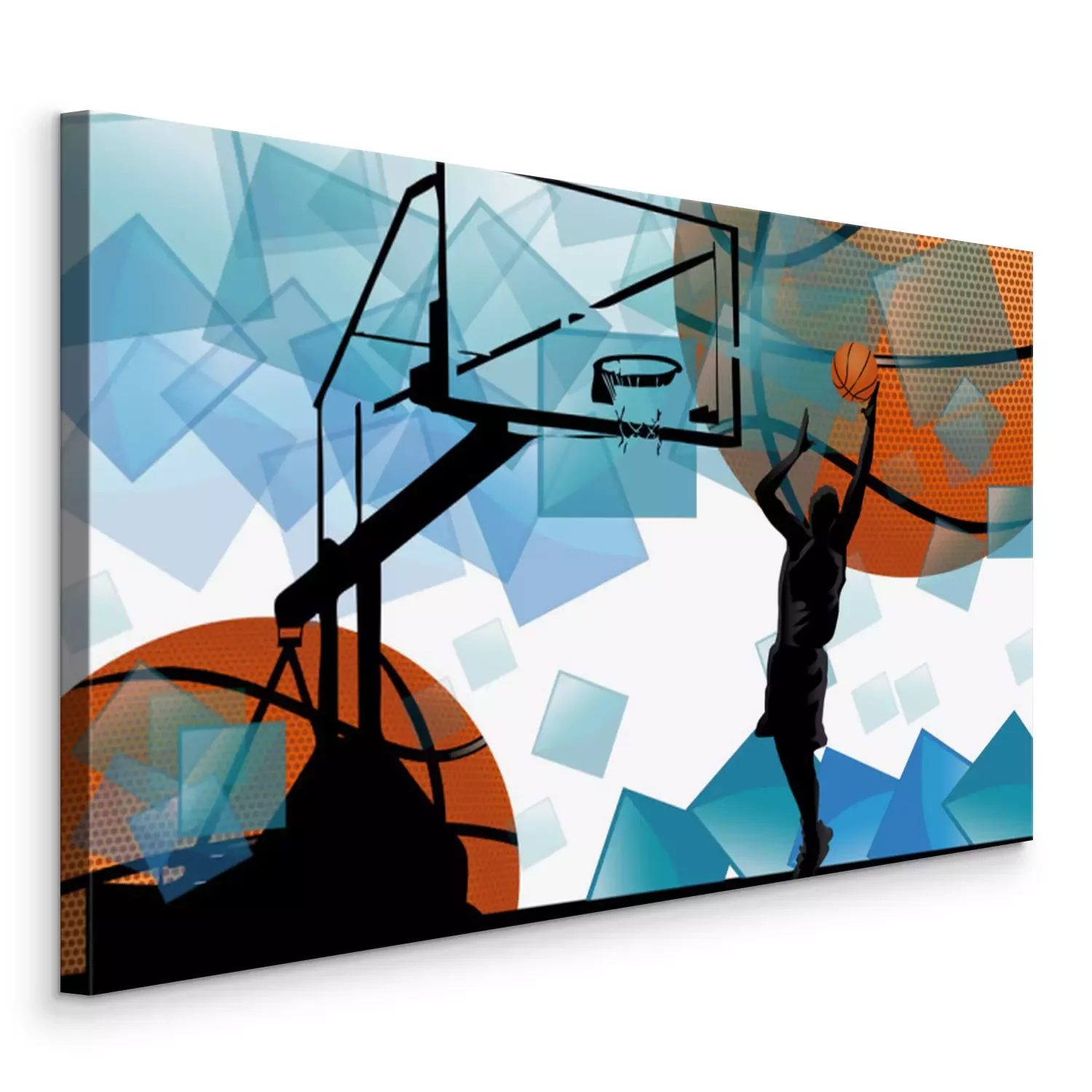 Canvas: basketbalspeler op de achtergrond van vierkanten