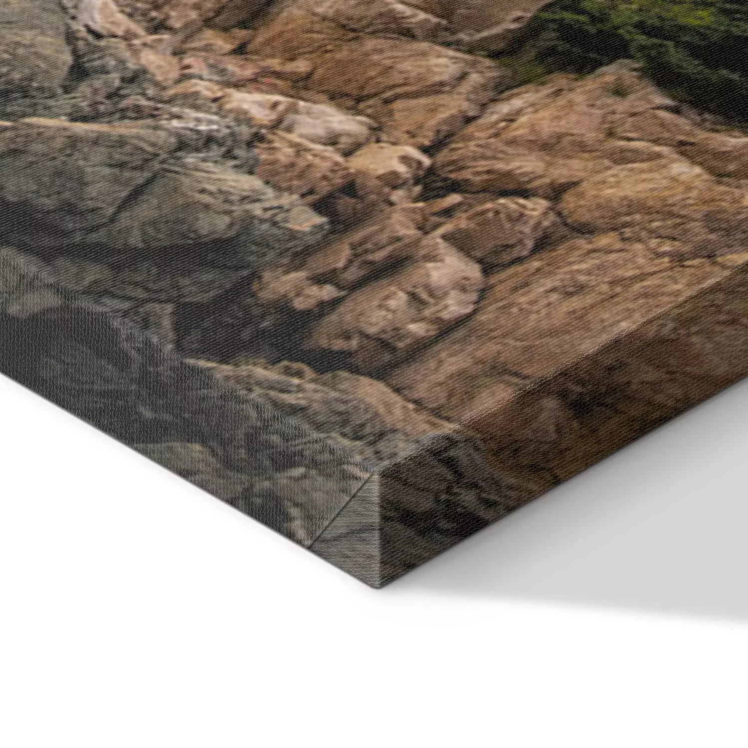 De print wordt aangebracht op hoogwaardig canvas dat op een schildersweefgetouw (spieraam) wordt gespannen. Omdat de print de zijranden bedekt, hoeft het ontwerp niet met een extra kader te worden omlijst. Wij raden ook composities aan die uit meerdere foto's bestaan en zo een coherente compositie vormen.
