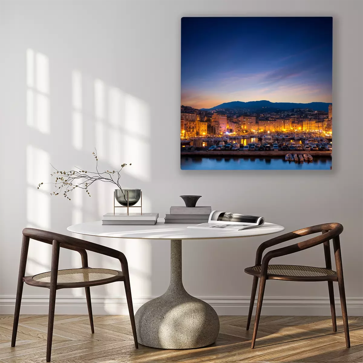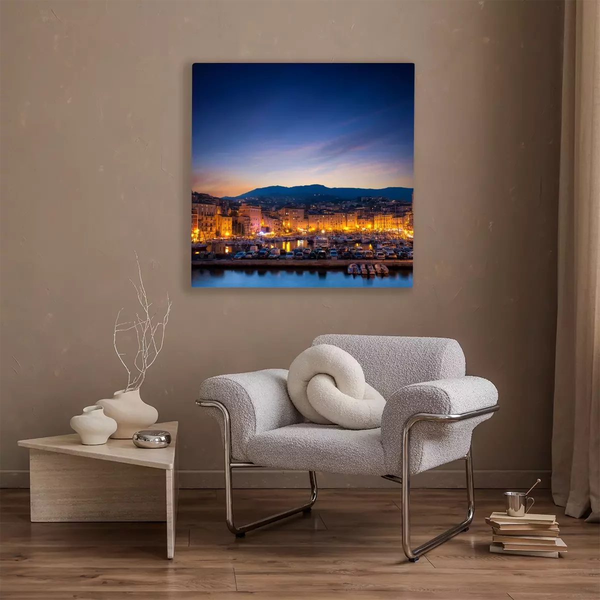 De print wordt aangebracht op hoogwaardig canvas dat op een schildersweefgetouw (spieraam) wordt gespannen. Omdat de print de zijranden bedekt, hoeft het ontwerp niet met een extra kader te worden omlijst. Wij raden ook composities aan die uit meerdere foto's bestaan en zo een coherente compositie vormen.