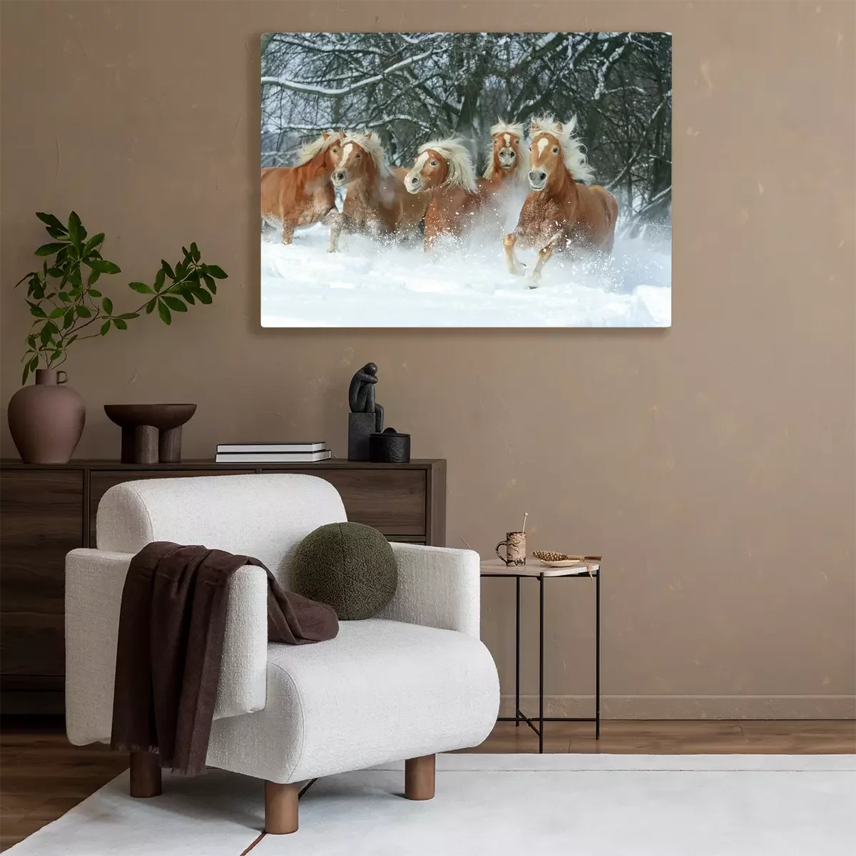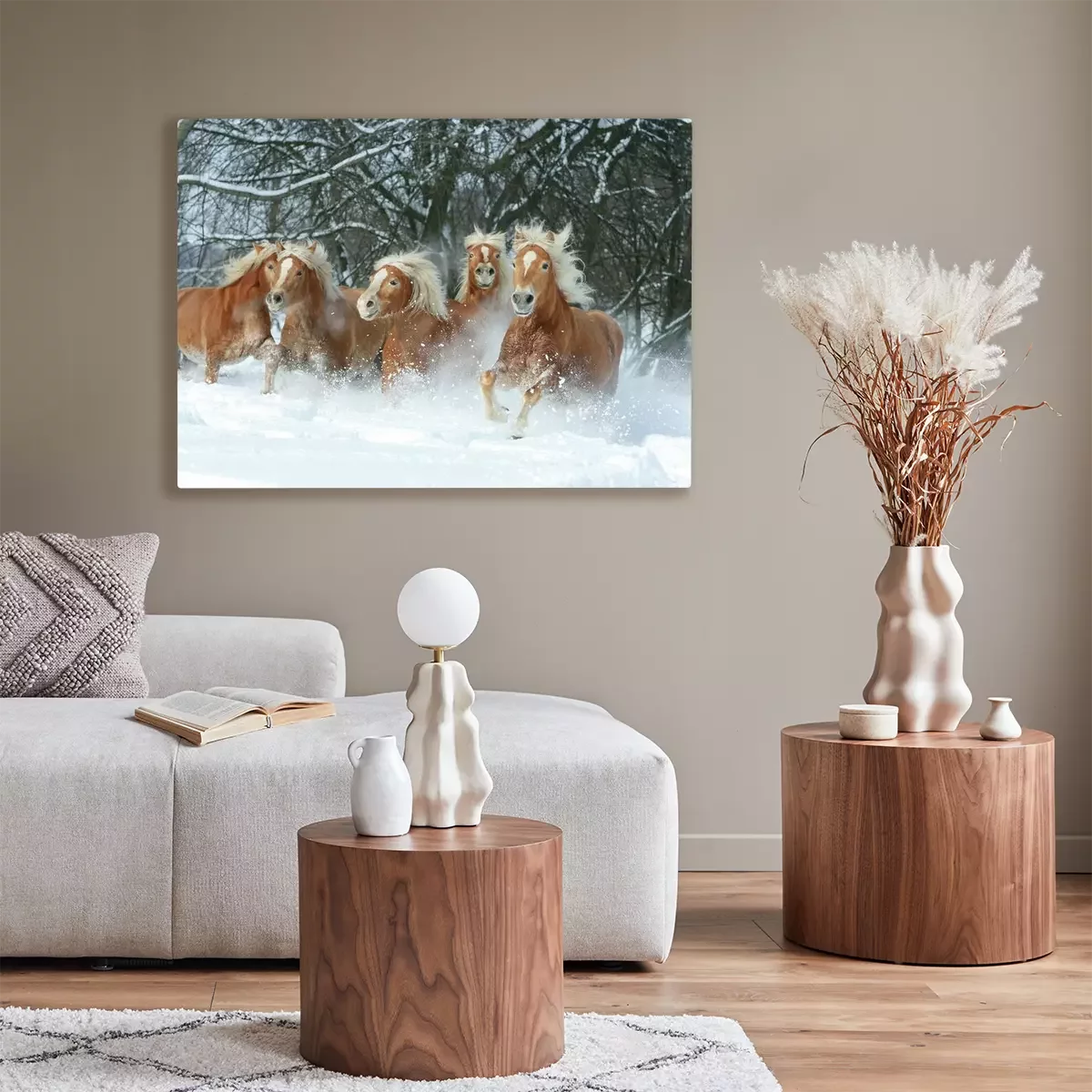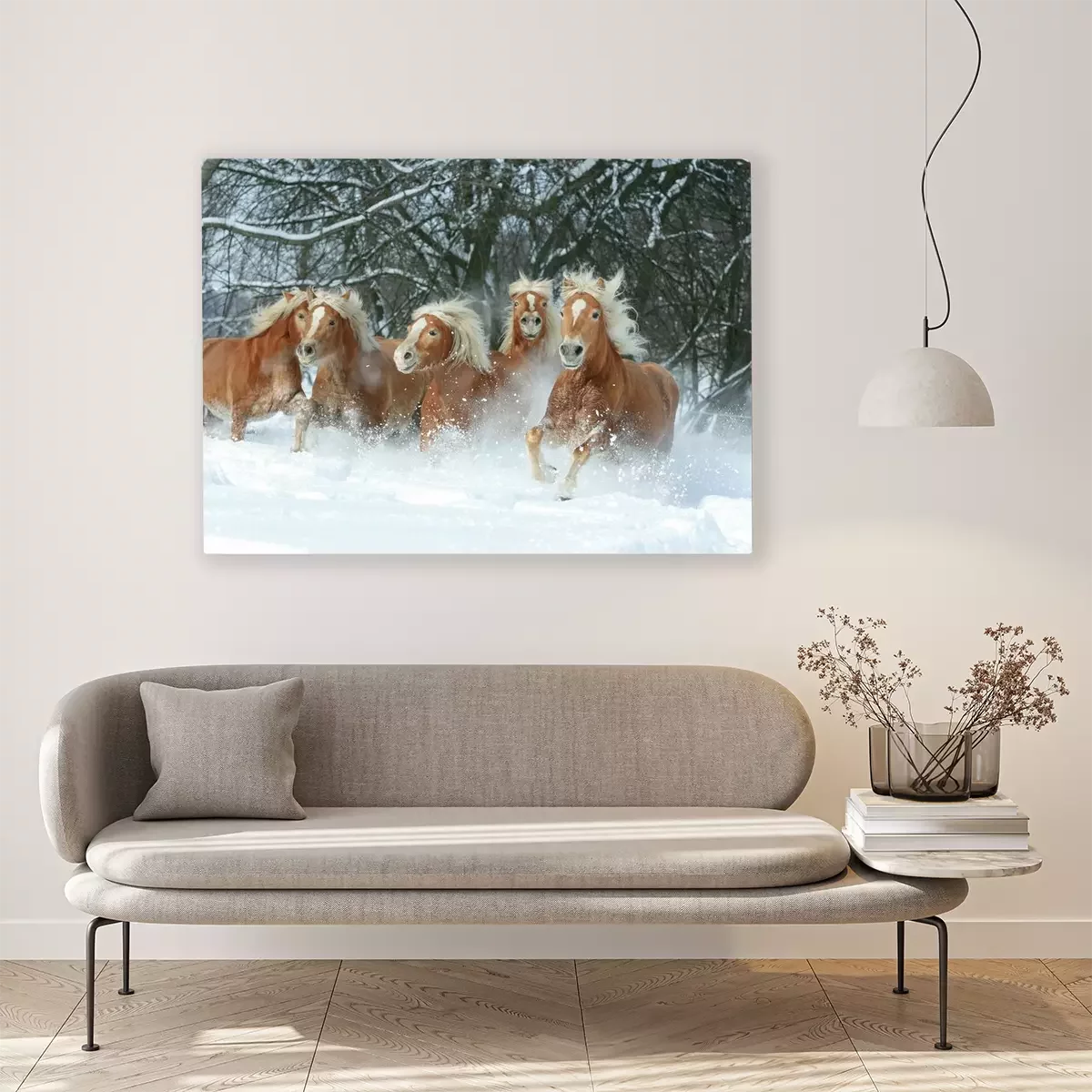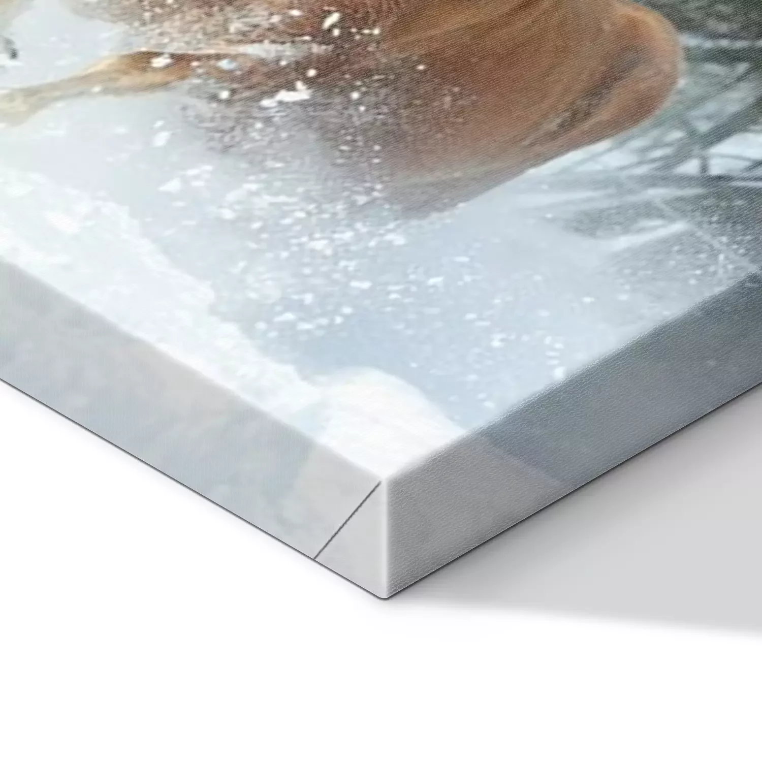 De print wordt aangebracht op hoogwaardig canvas dat op een schildersweefgetouw (spieraam) wordt gespannen. Omdat de print de zijranden bedekt, hoeft het ontwerp niet met een extra kader te worden omlijst. Wij raden ook composities aan die uit meerdere foto's bestaan en zo een coherente compositie vormen.