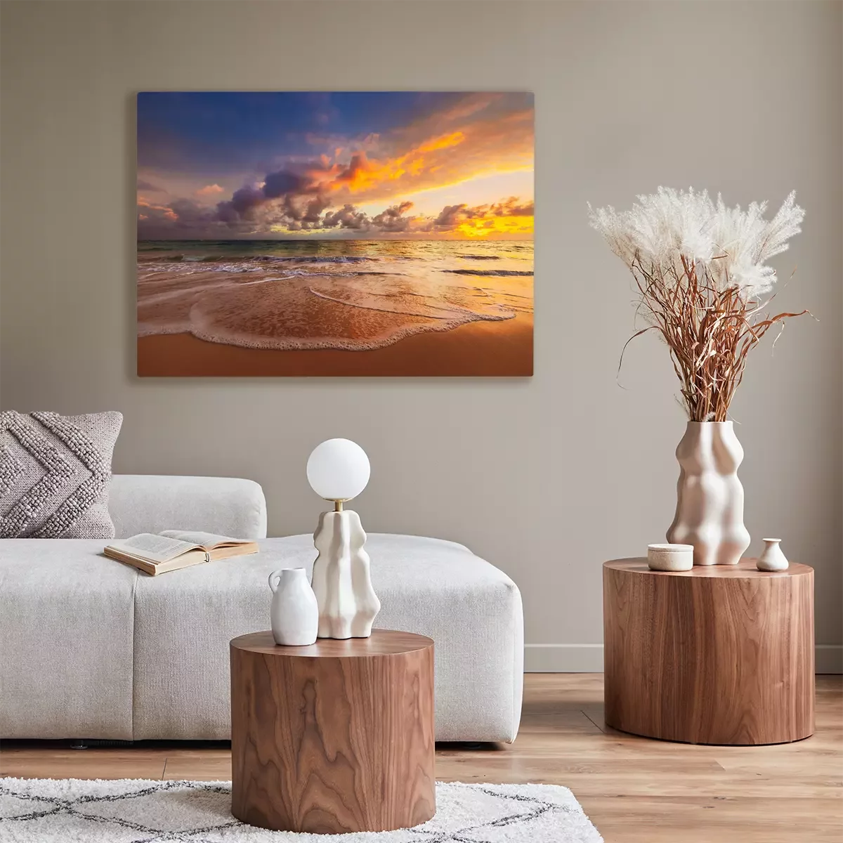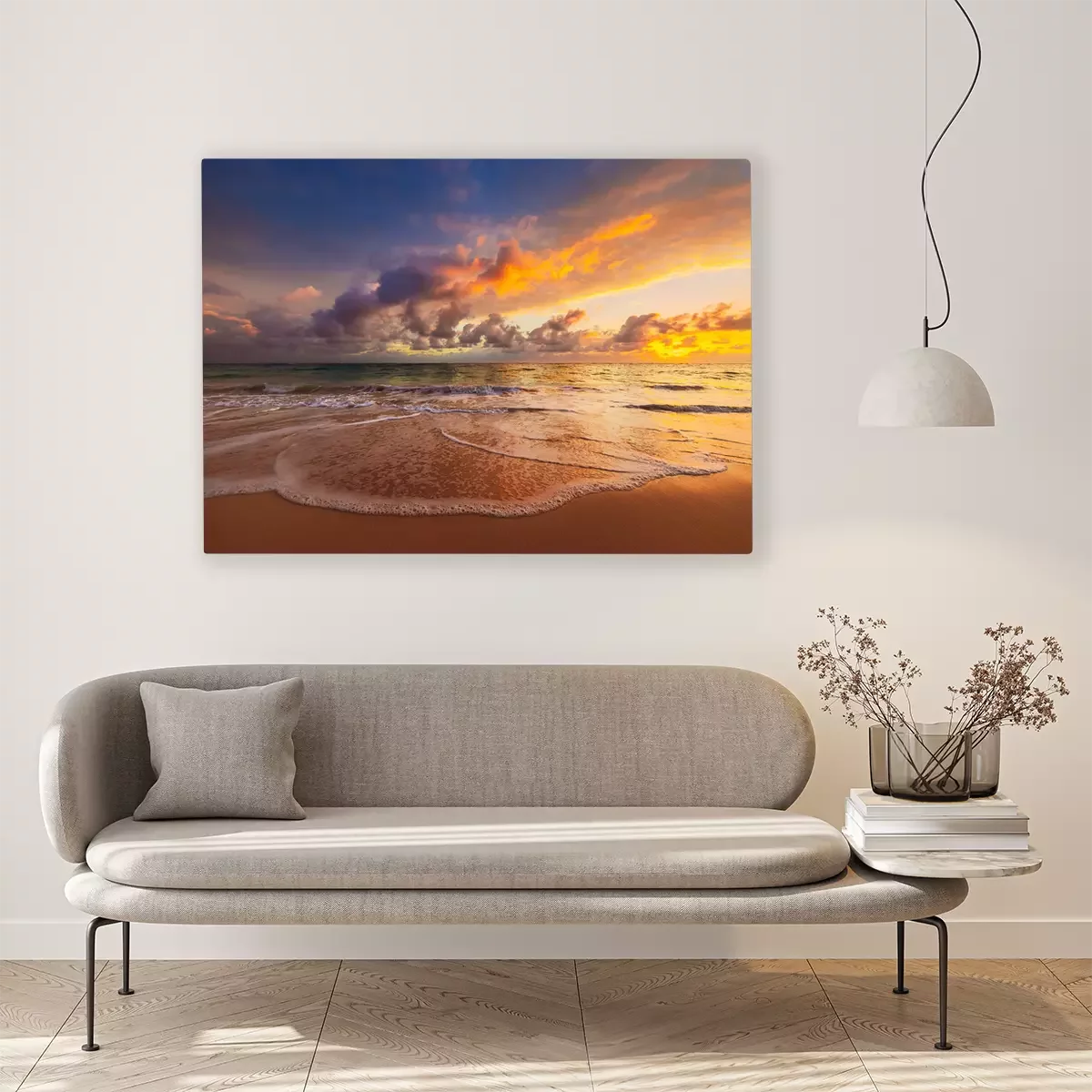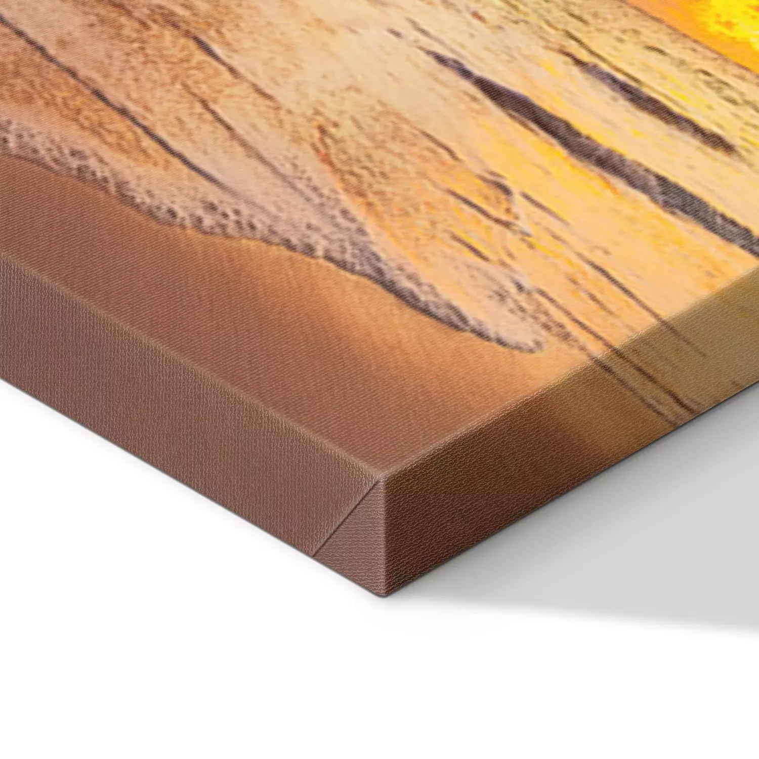 De print wordt aangebracht op hoogwaardig canvas dat op een schildersweefgetouw (spieraam) wordt gespannen. Omdat de print de zijranden bedekt, hoeft het ontwerp niet met een extra kader te worden omlijst. Wij raden ook composities aan die uit meerdere foto's bestaan en zo een coherente compositie vormen.