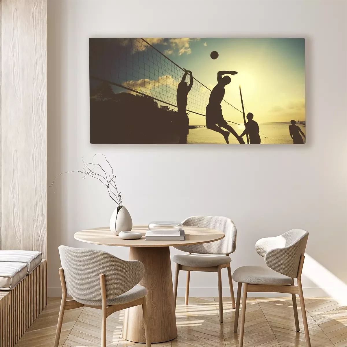 Canvas Beach Volleybal op Sunset Plezier Concept