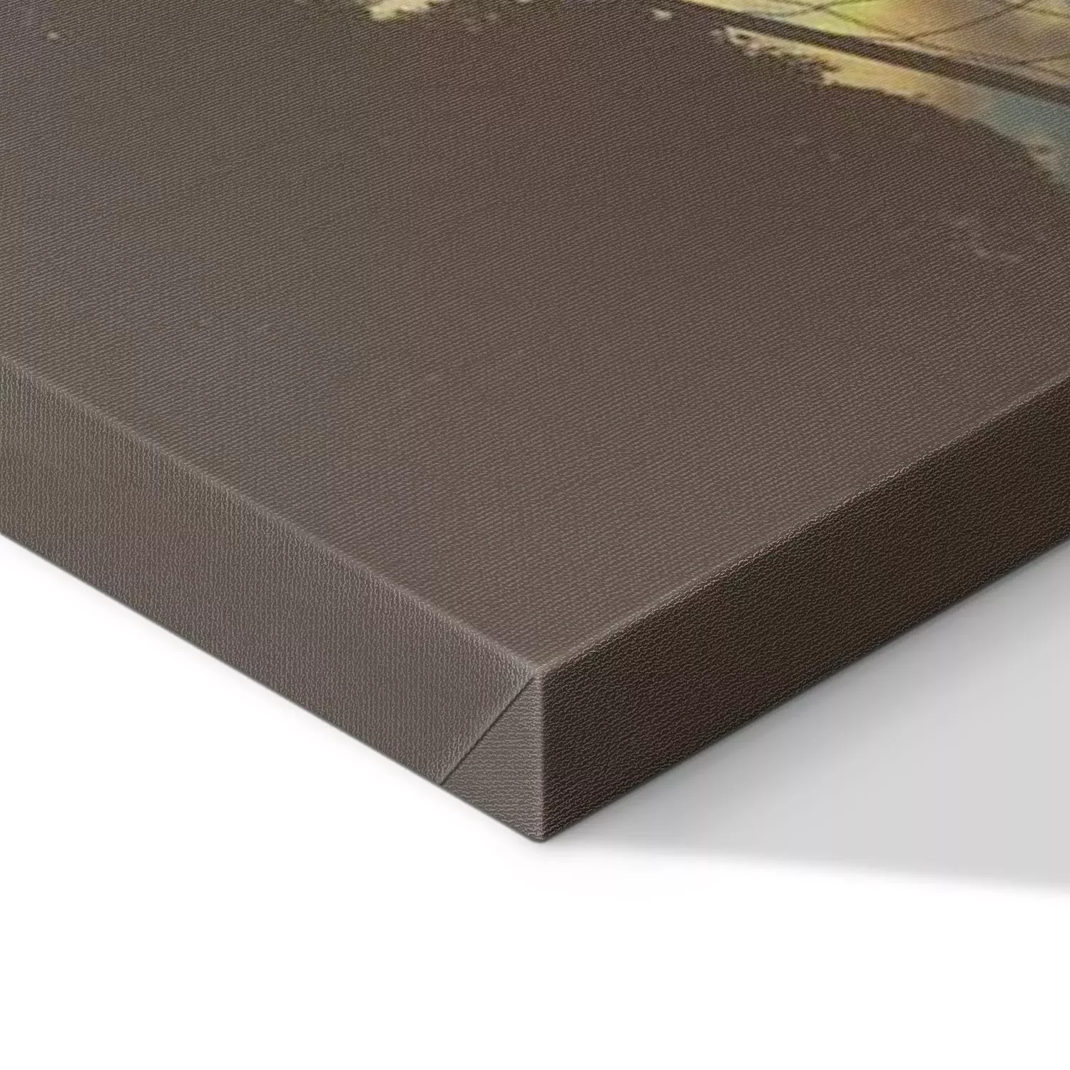 De print wordt aangebracht op hoogwaardig canvas dat op een schildersweefgetouw (spieraam) wordt gespannen. Omdat de print de zijranden bedekt, hoeft het ontwerp niet met een extra kader te worden omlijst. Wij raden ook composities aan die uit meerdere foto's bestaan en zo een coherente compositie vormen.