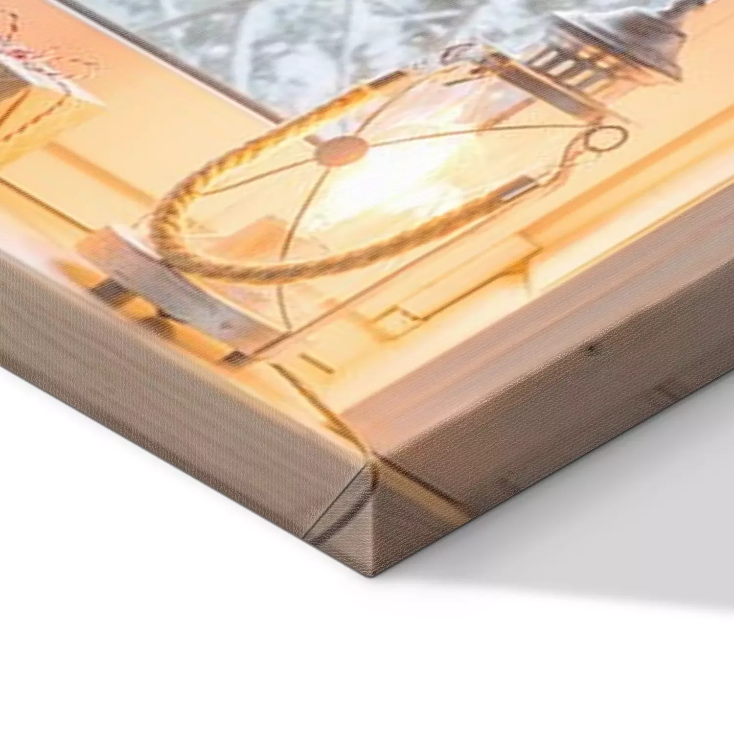 De print wordt aangebracht op hoogwaardig canvas dat op een schildersweefgetouw (spieraam) wordt gespannen. Omdat de print de zijranden bedekt, hoeft het ontwerp niet met een extra kader te worden omlijst. Wij raden ook composities aan die uit meerdere foto's bestaan en zo een coherente compositie vormen.