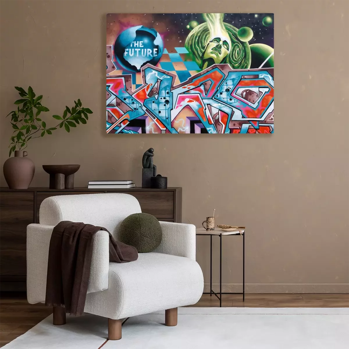 Canvas: Beautiful colored graffiti drawing on the wall.