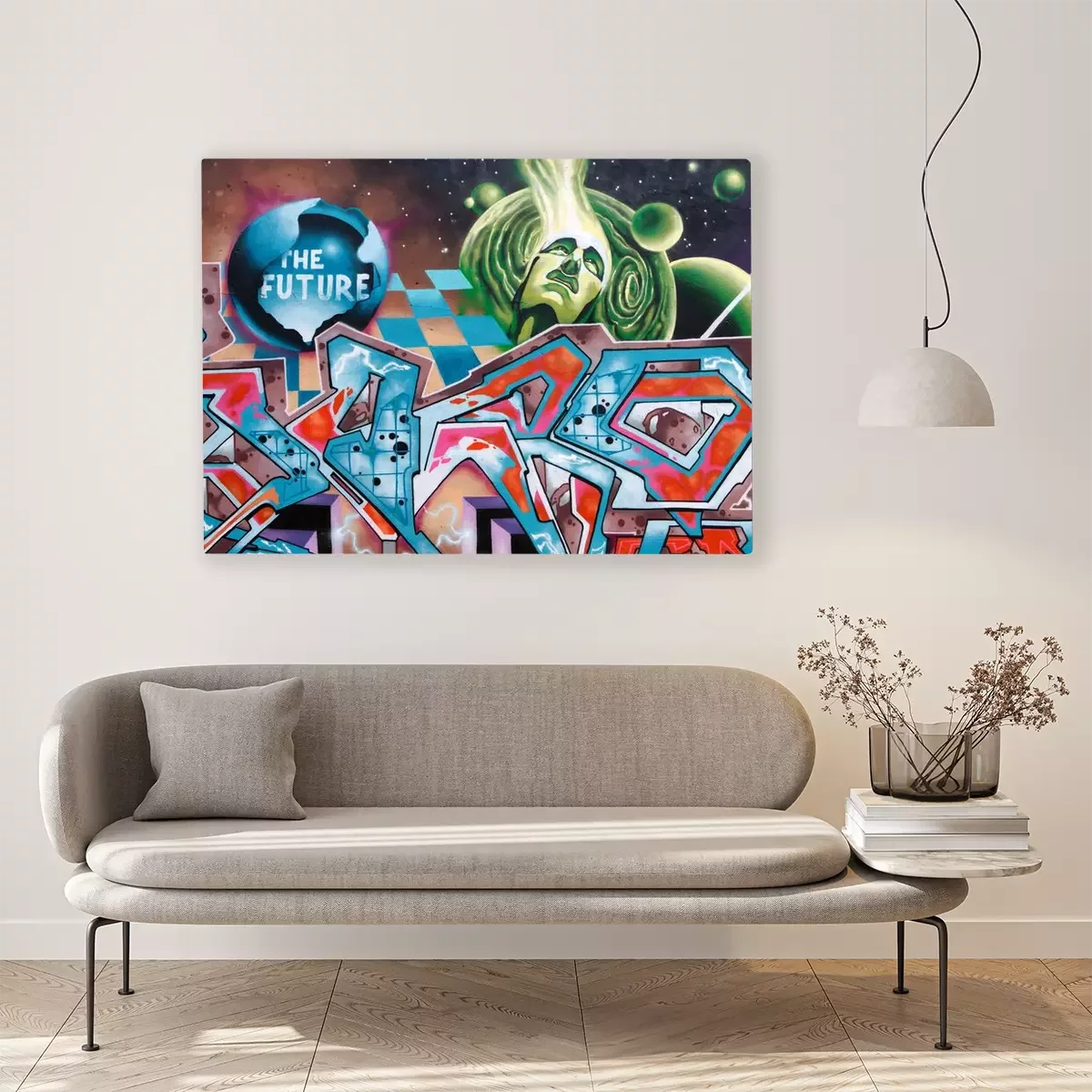 Canvas Beautiful colored graffiti drawing on the wall.