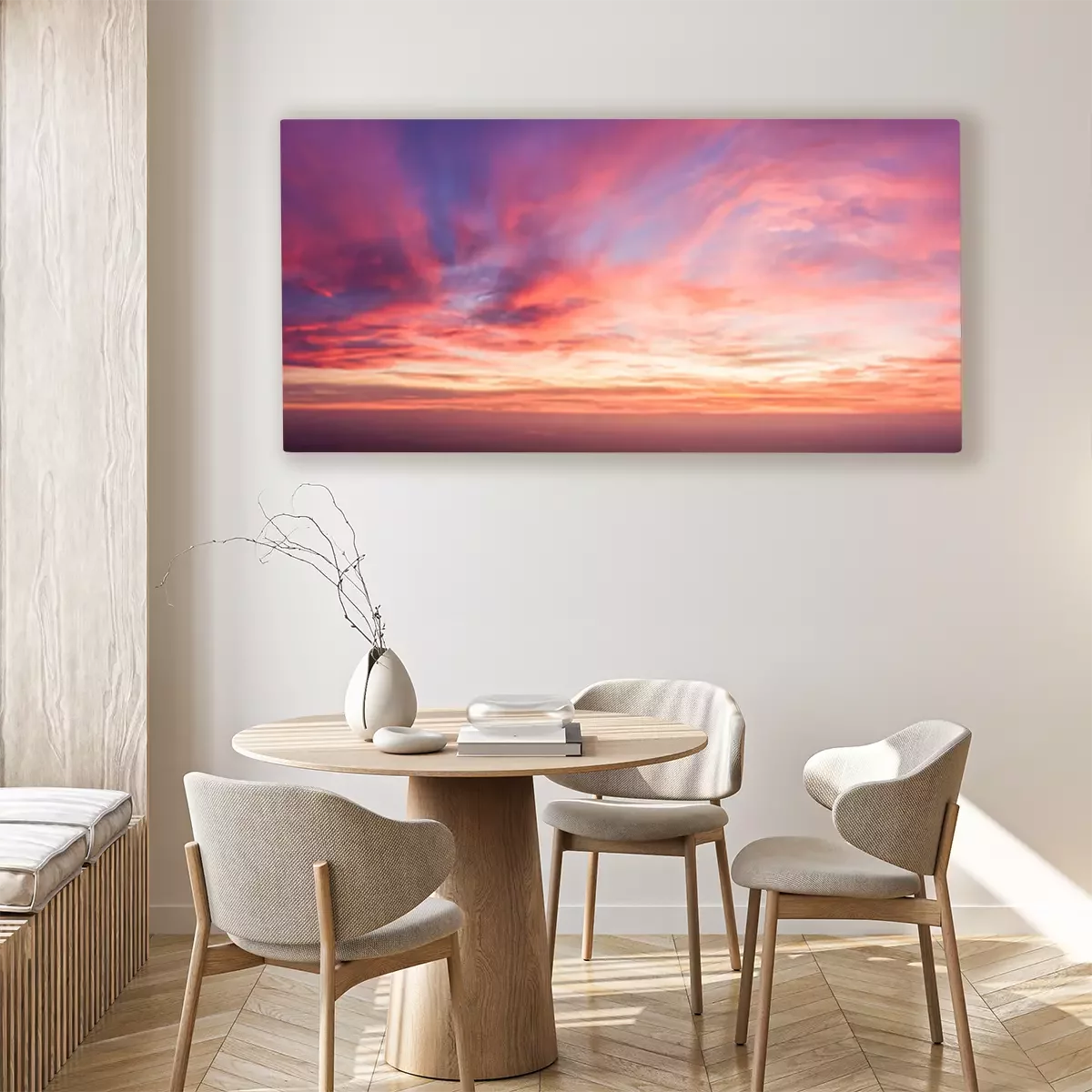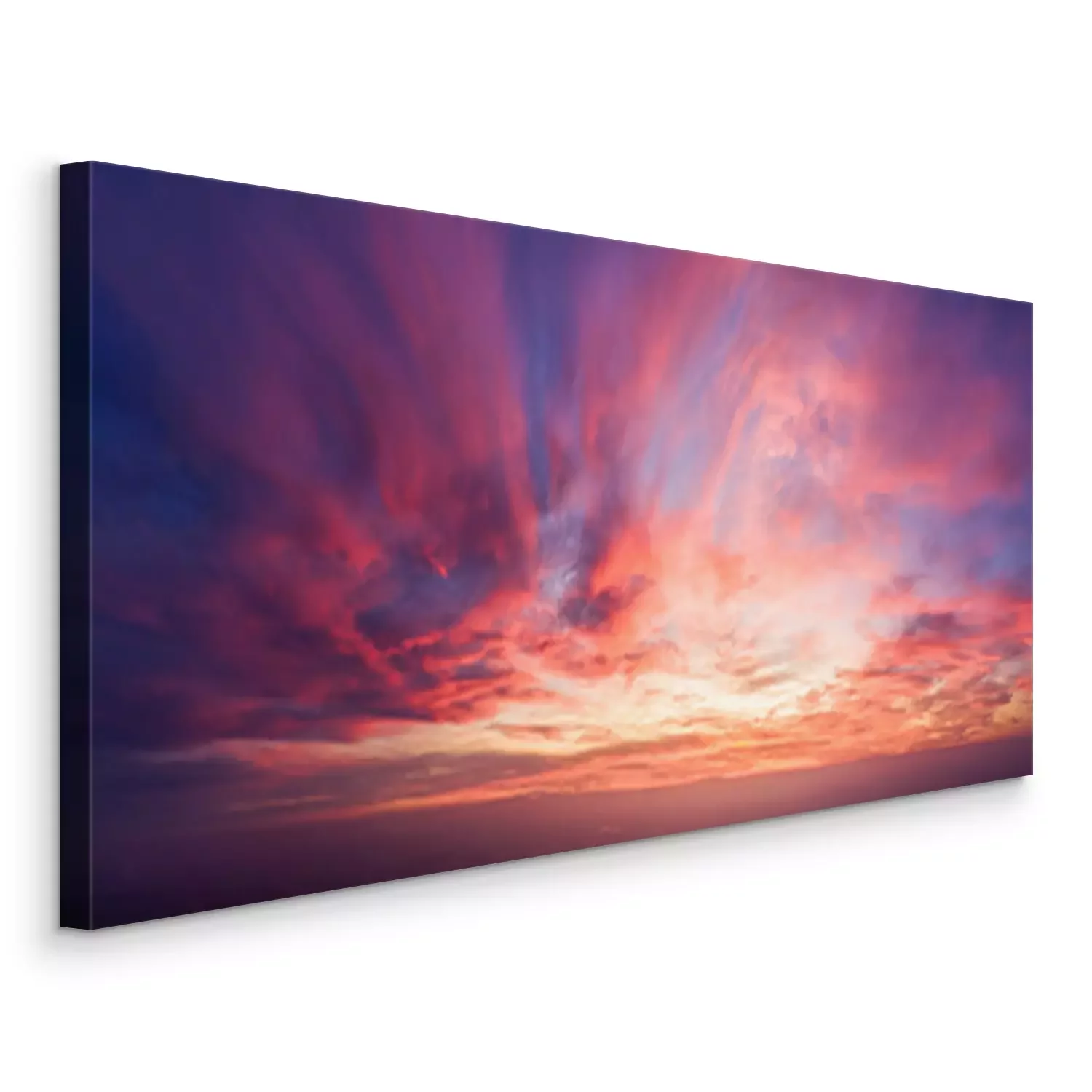 Canvas Beautiful dark orange sky evening beauty and Clouds at sunset , dawn, the rays of the sun break through the clouds. Natural
