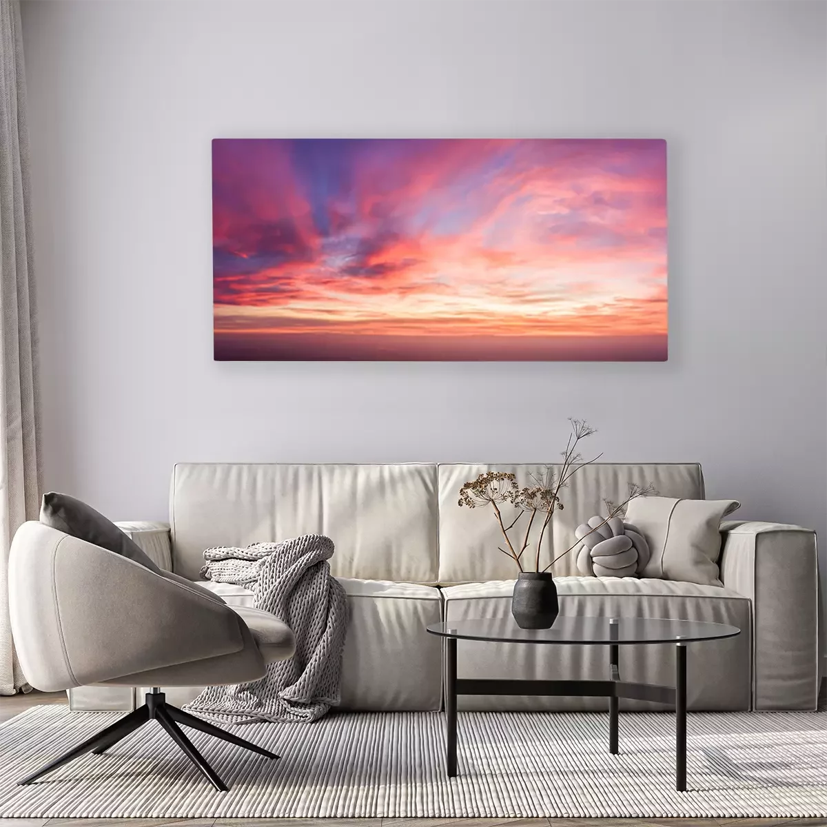 De print wordt aangebracht op hoogwaardig canvas dat op een schildersweefgetouw (spieraam) wordt gespannen. Omdat de print de zijranden bedekt, hoeft het ontwerp niet met een extra kader te worden omlijst. Wij raden ook composities aan die uit meerdere foto's bestaan en zo een coherente compositie vormen.