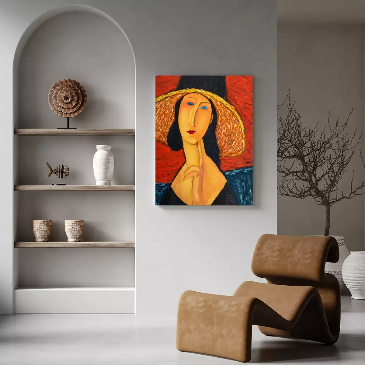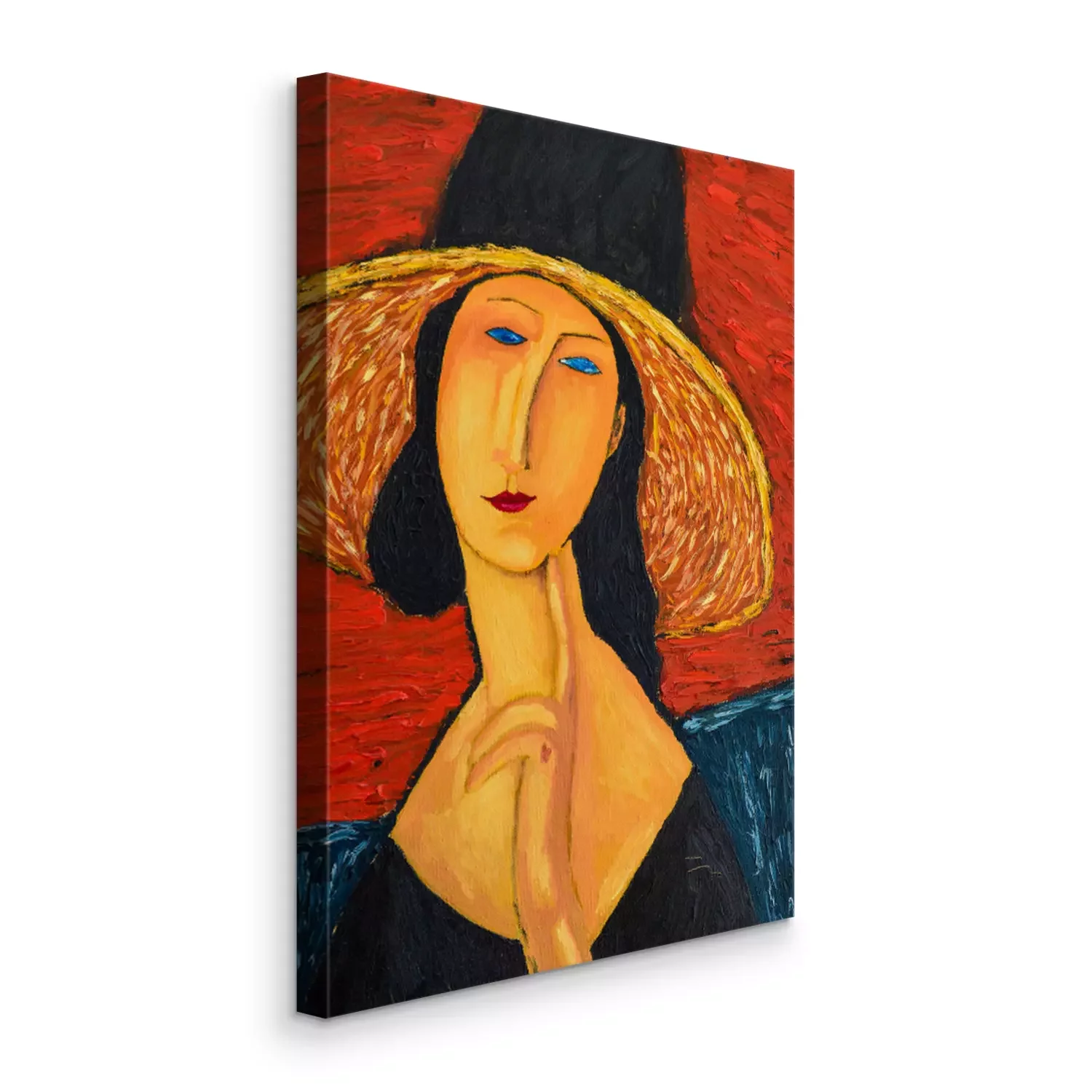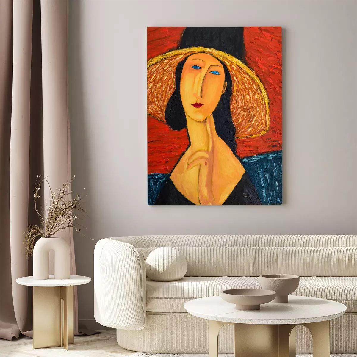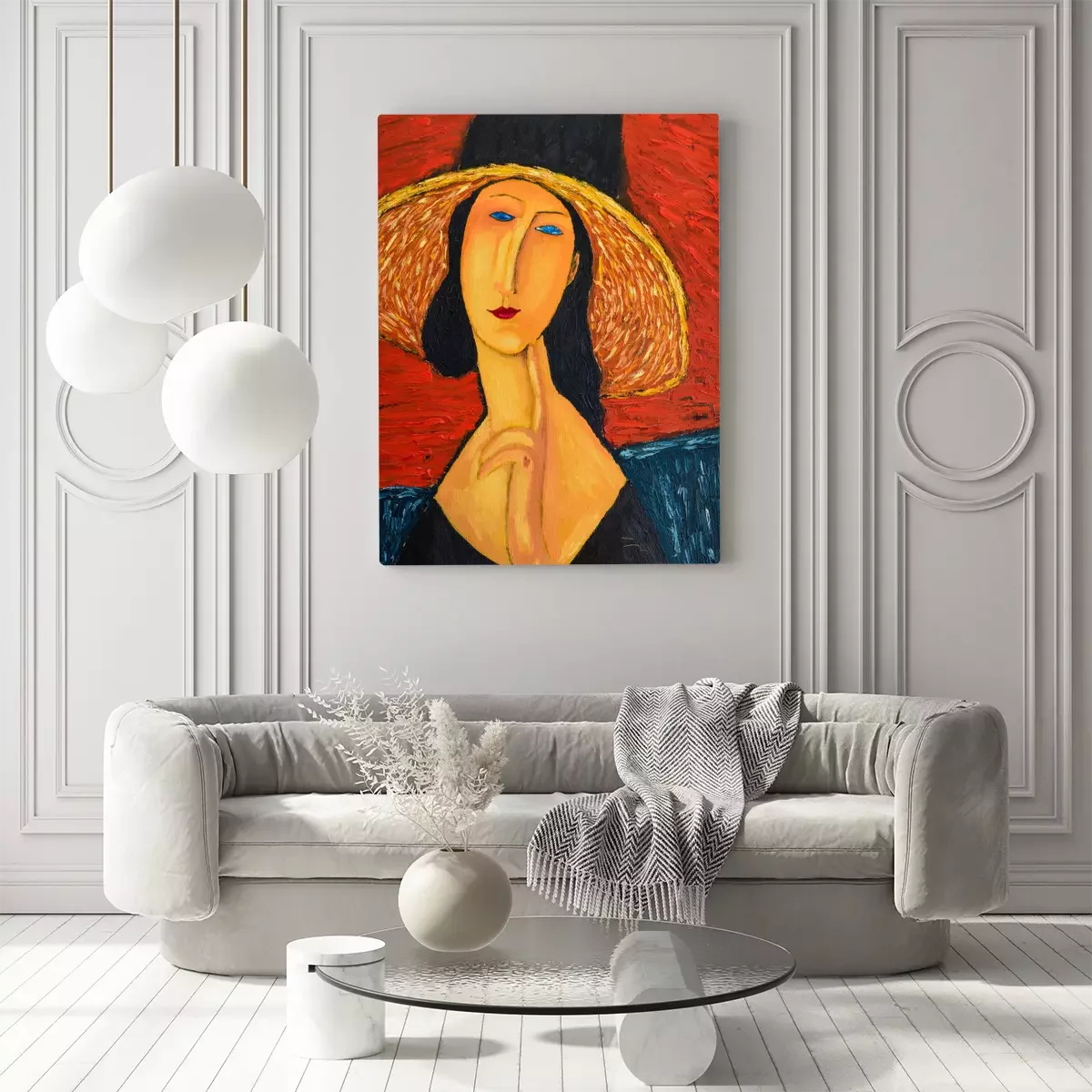 Canvas: Beautiful Image Oil portrait On Canvas. Portrait of a woman in a hat. On the motives of painting by Amedeo Modigliani