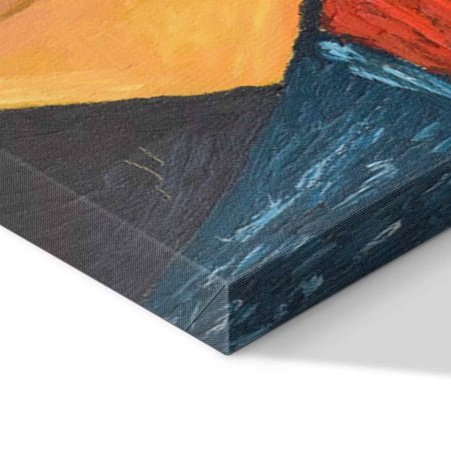 De print wordt aangebracht op hoogwaardig canvas dat op een schildersweefgetouw (spieraam) wordt gespannen. Omdat de print de zijranden bedekt, hoeft het ontwerp niet met een extra kader te worden omlijst. Wij raden ook composities aan die uit meerdere foto's bestaan en zo een coherente compositie vormen.