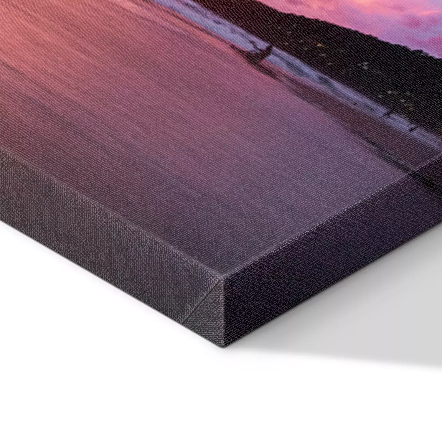 De print wordt aangebracht op hoogwaardig canvas dat op een schildersweefgetouw (spieraam) wordt gespannen. Omdat de print de zijranden bedekt, hoeft het ontwerp niet met een extra kader te worden omlijst. Wij raden ook composities aan die uit meerdere foto's bestaan en zo een coherente compositie vormen.